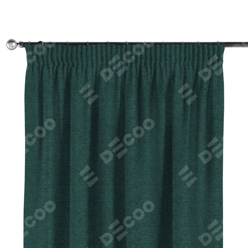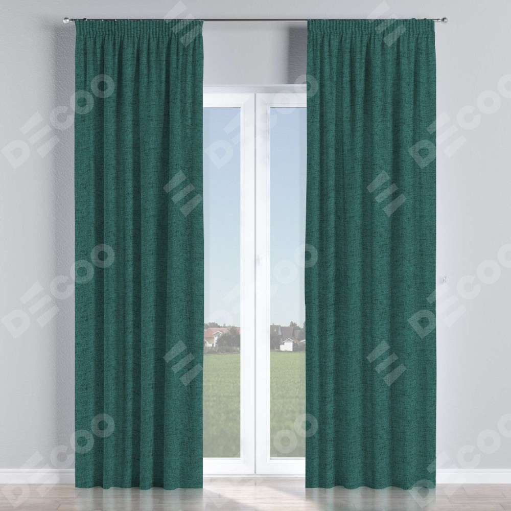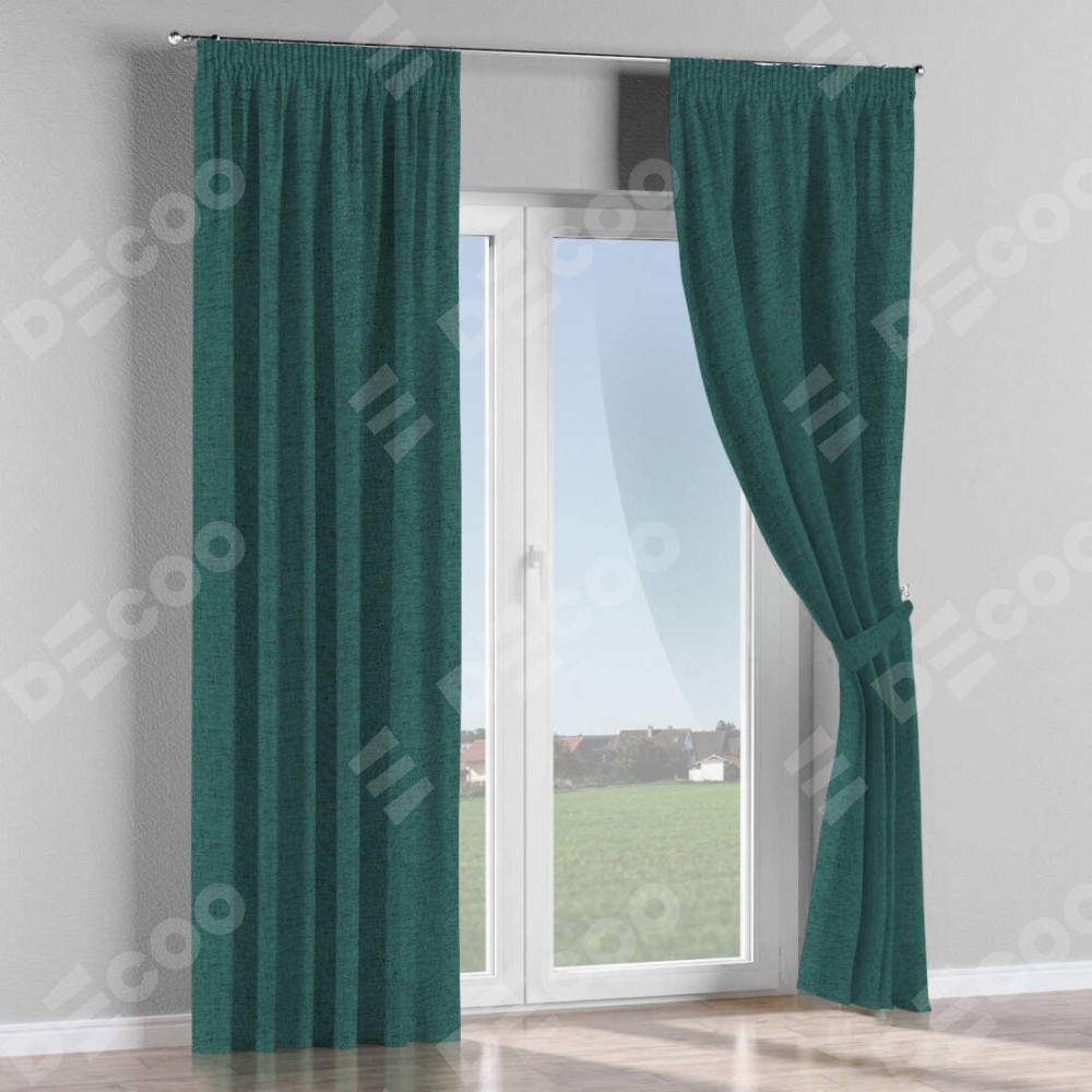 Комплект прямых штор, от производителя «Cortin», пошиты из ткани стиф димаут сине-зелёный, артикул ткани 18194. С изнаночной стороны в верхней части штор пристрачивается шторная лента с декоративными складками «Карандаш». Для создания элегантных складок прямые шторы шьются по стандарту с коэффициентом 1:2 (на 100 см. ширины проёма 200 см. ширины ткани).