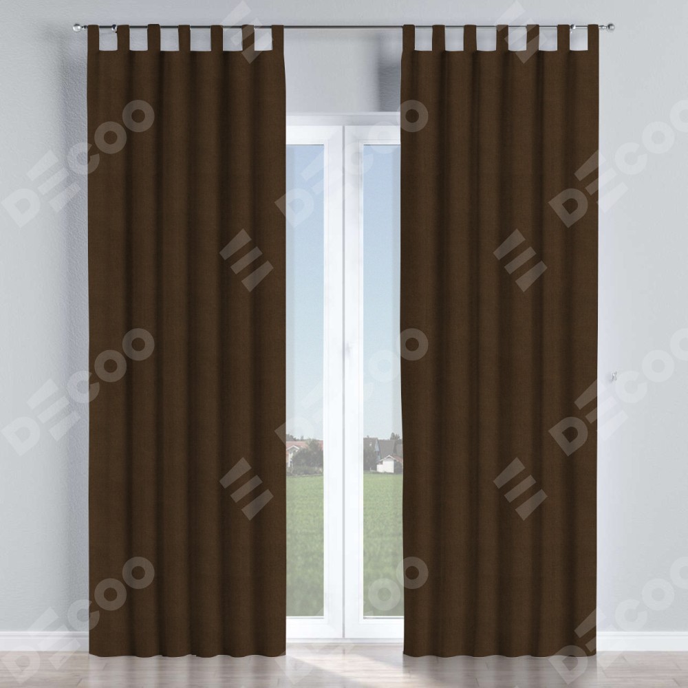 Комплект прямых штор, от производителя «Cortin», пошиты из ткани вельвет тёмно-коричневый, артикул ткани 30991. Данная модель пошита на петлях, комплектуется на выбор круглым карнизом и подходит для монтажа на стену или потолок. Прямые шторы на петлях шьются по стандарту с коэффициентом 1/2 (на 100 см. ширины проёма 200 см. ширины ткани), отличительным преимуществом данной модели является простой способ монтажа. Достаточно повесить ее на трубу и штора готова!