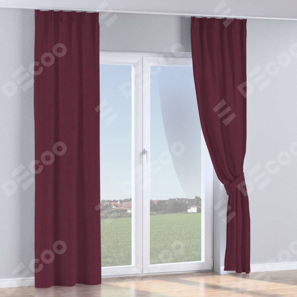 Комплект прямых штор, от производителя «Cortin», пошиты из ткани блэкаут однотонный сиреневый, артикул ткани 29333−2. С изнаночной стороны в верхней части штор пристрачивается шторная лента с декоративными складками «Кустик». Для создания элегантных складок прямые шторы шьются по стандарту с коэффициентом 1:2 (на 100 см. ширины проёма 200 см. ширины ткани).