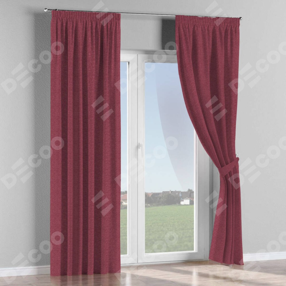 Комплект штор на тесьме «Карандаш», лён димаут марсала