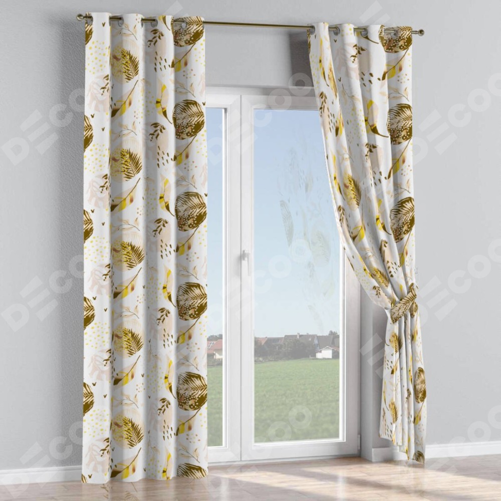 Комплект прямых штор, от производителя «Cortin», пошиты из ткани блэкаут с нанесением сублимационной печати «Золотые листья». Данная модель пошита на люверсах, комплектуется на выбор круглым карнизом и подходит для монтажа на стену или потолок. Прямые шторы на люверсах шьются по стандарту с коэффициентом 1/2 (на 100 см. ширины проёма 200 см. ширины ткани), отличительным преимуществом данной модели является простой способ монтажа. Достаточно повесить ее на трубу и штора готова!