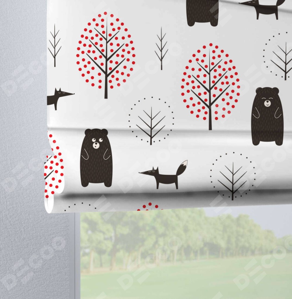 Римская штора «Кортин» на петлях «Сканди лес» отлично подойдёт для интерьера: на балкон и в детскую.