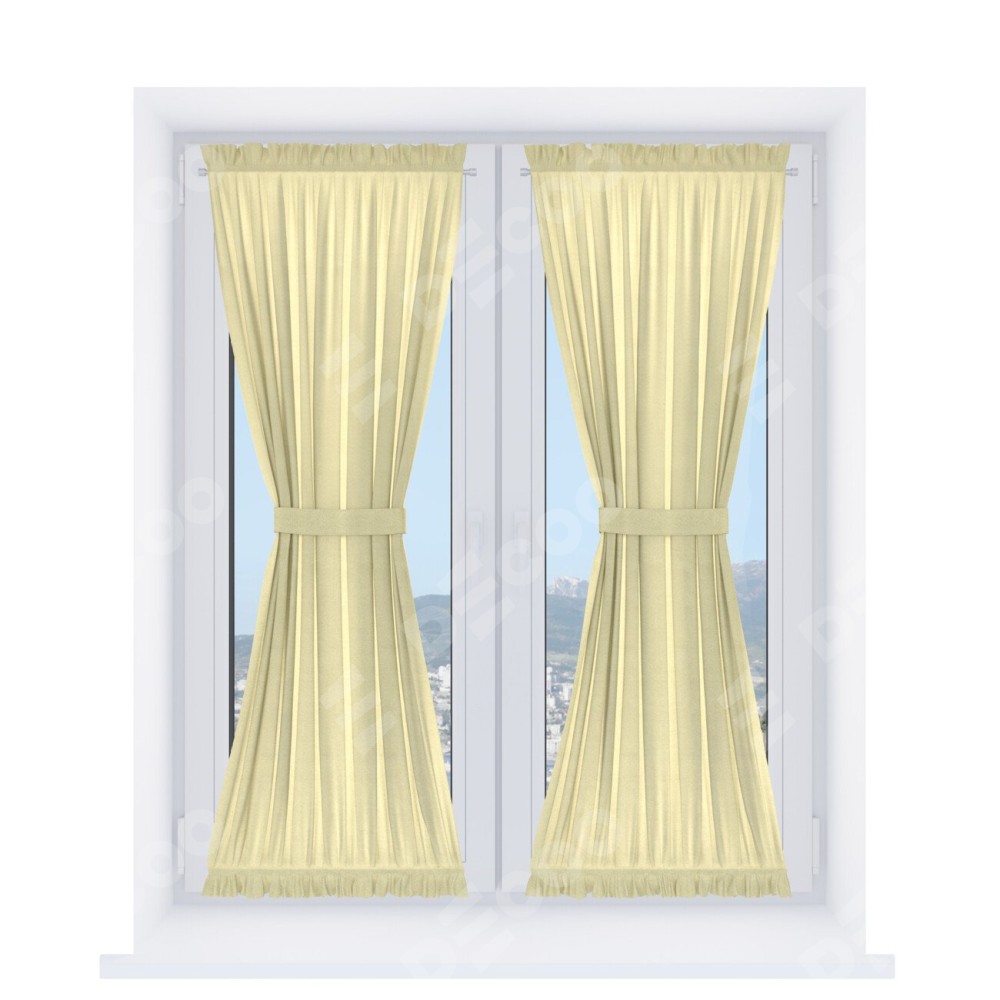 Штора «Песочные часы» производителя «Cortin», используется для створок окон и дверей, пошита из ткани софт однотонный молочный, артикул ткани 11938.