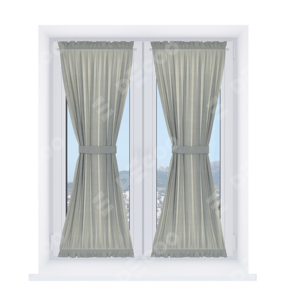 Штора «Песочные часы» производителя «Cortin», используется для створок окон и дверей, пошита из ткани блэкаут однотонный серый, артикул ткани 88292.