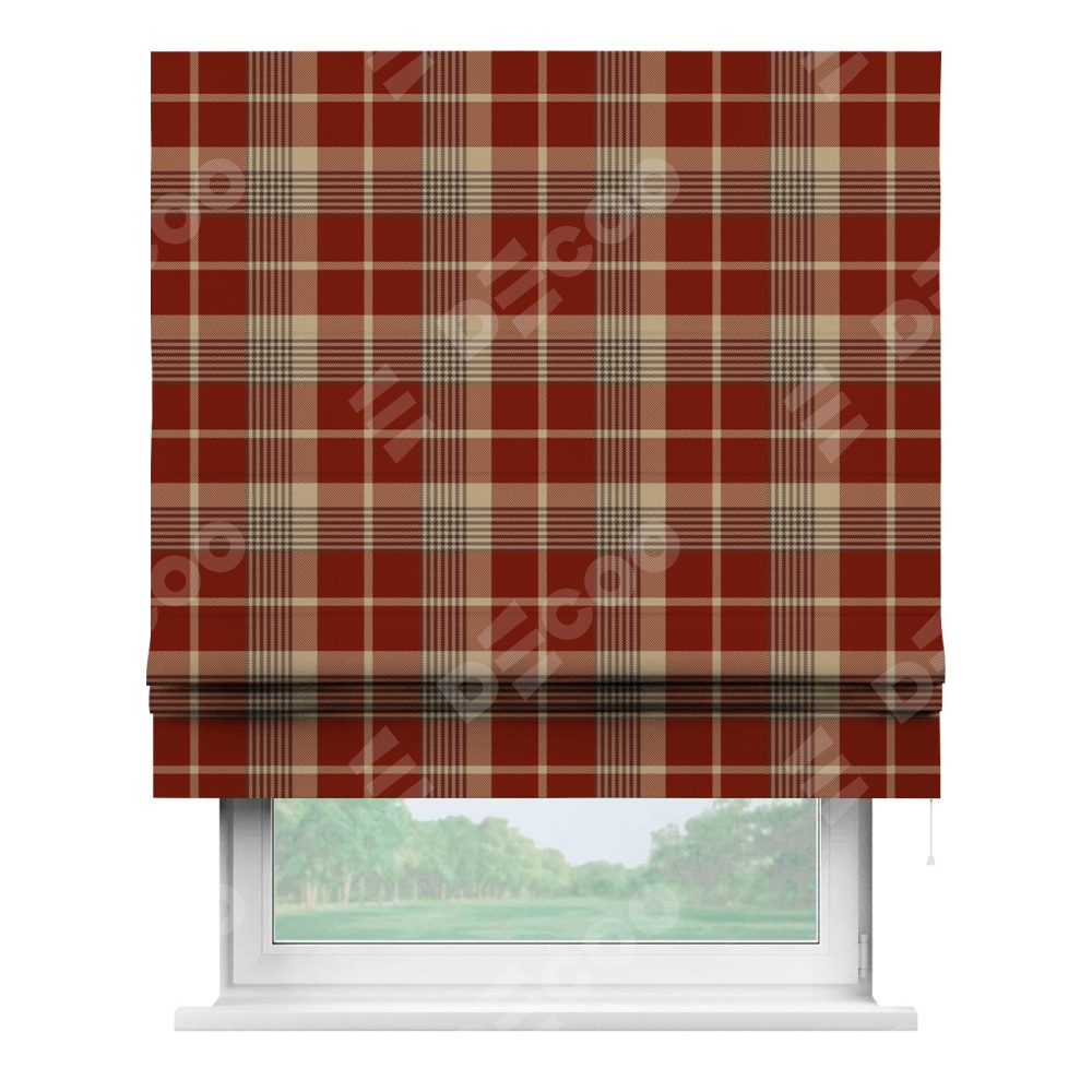 Римская штора «Кортин» для проема «Бежево-бордовая клетка»