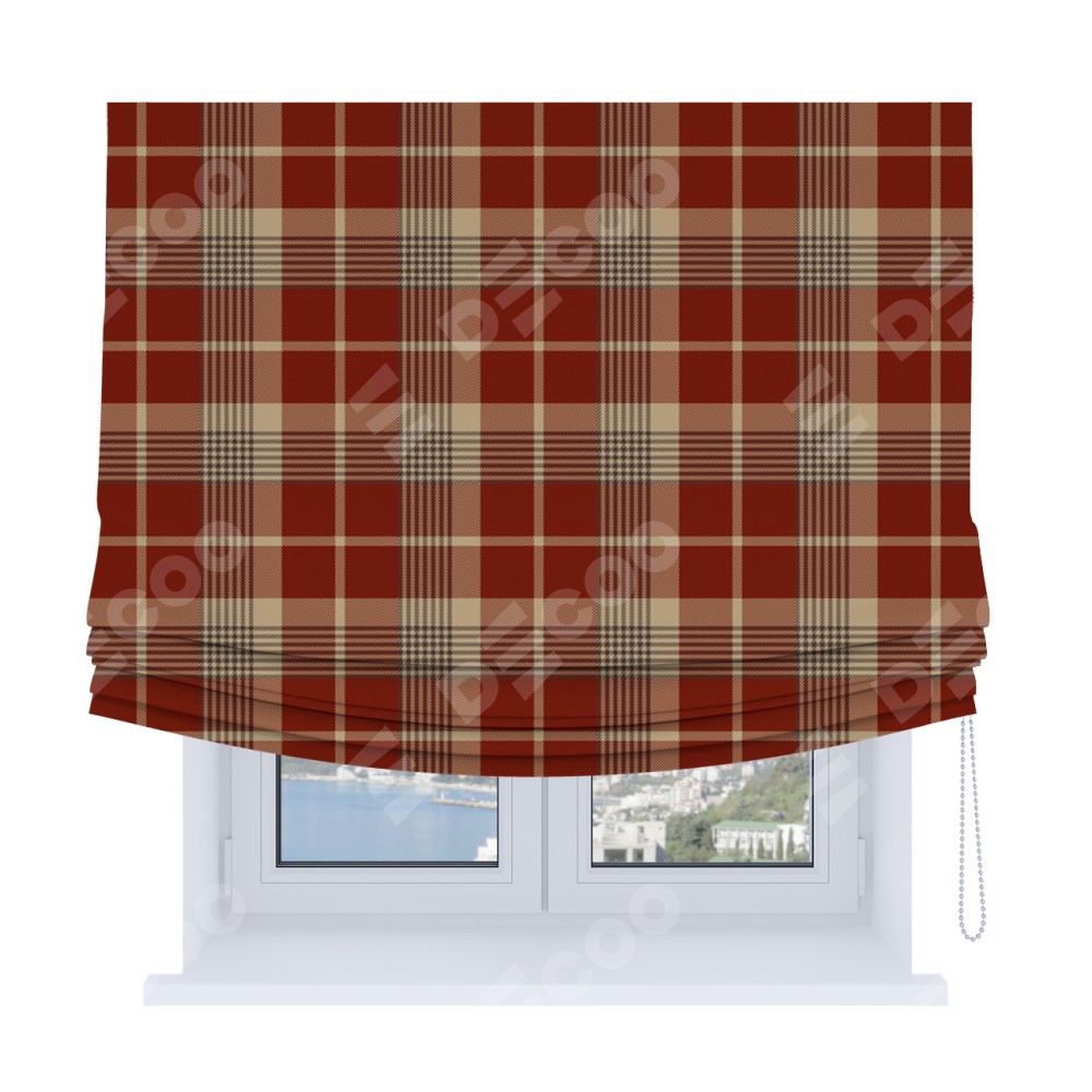 Римская штора Soft с мягкими складками, «Бежево-бордовая клетка»