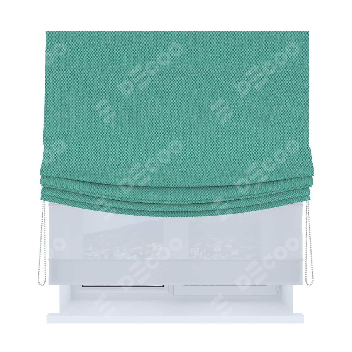 Римская штора день-ночь производителя «Cortin», используется для проёма, пошита из двух полотен, с лицевой стороны лён димаут бирюзовый артикул 23, вторая ткань тюль (по стандарту комплектуется тюль белого цвета артикул V-01). Имеет универсальный механизм и подходит для монтажа: на потолок, на стену и в нишу. Удобное управление каждой шторой отдельно.
