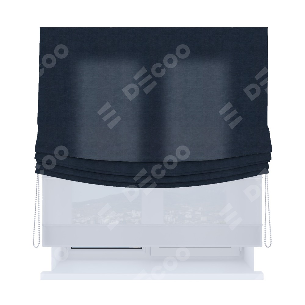 Римская штора день-ночь производителя «Cortin», используется для проёма, пошита из двух полотен, с лицевой стороны софт однотонный тёмно-синий артикул 33111, вторая ткань тюль (по стандарту комплектуется тюль белого цвета артикул V-01). Имеет универсальный механизм и подходит для монтажа: на потолок, на стену и в нишу. Удобное управление каждой шторой отдельно.