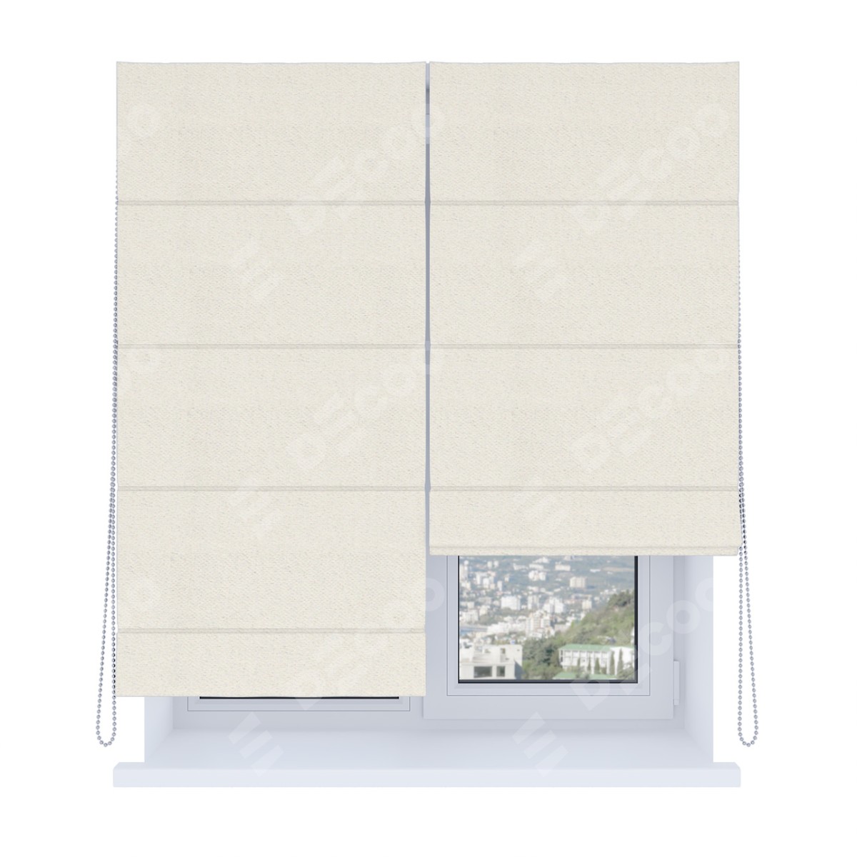 Римская штора производителя «Cortin», используется для проёма, пошита из ткани блэкаут тиснение с блеском светло-серый, артикул ткани 34633. Изнаночная сторона материала черного цвета, что обеспечивает необходимую светонепроницаемость. Имеет универсальный механизм и подходит для монтажа: на потолок, на стену и в нишу. Удобное управление каждой шторой отдельно.