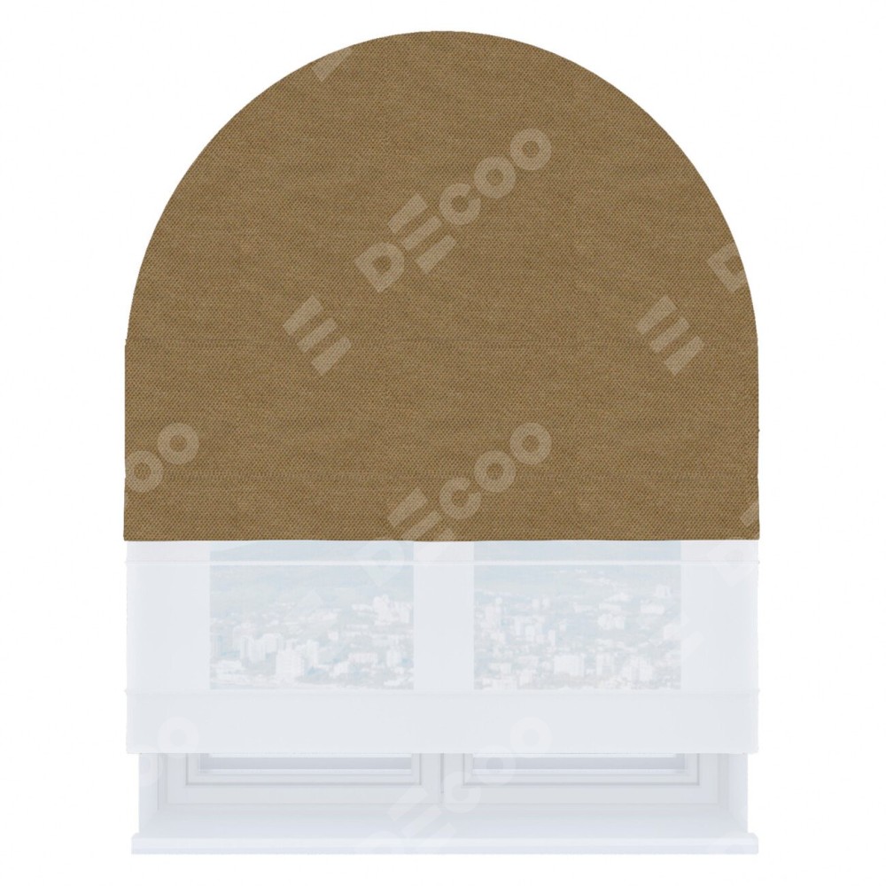 Римская штора день-ночь производителя «Cortin», используется для арочного проёма, пошита из двух полотен, с лицевой стороны лён димаут коричневый артикул 83026, вторая ткань тюль (по стандарту комплектуется тюль белого цвета артикул V-01). Штора шьётся по индивидуальным размерам, для данного типа римской шторы возможная ширина от 60 до 300 см. Удобное управление каждой шторой отдельно.
