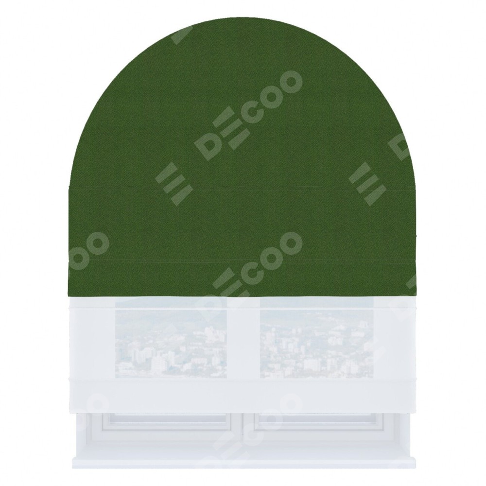 Римская штора день-ночь производителя «Cortin», используется для арочного проёма, пошита из двух полотен, с лицевой стороны блэкаут однотонный зелёный перламутр артикул 81859−2, вторая ткань тюль (по стандарту комплектуется тюль белого цвета артикул V-01). Штора шьётся по индивидуальным размерам, для данного типа римской шторы возможная ширина от 60 до 300 см. Удобное управление каждой шторой отдельно.