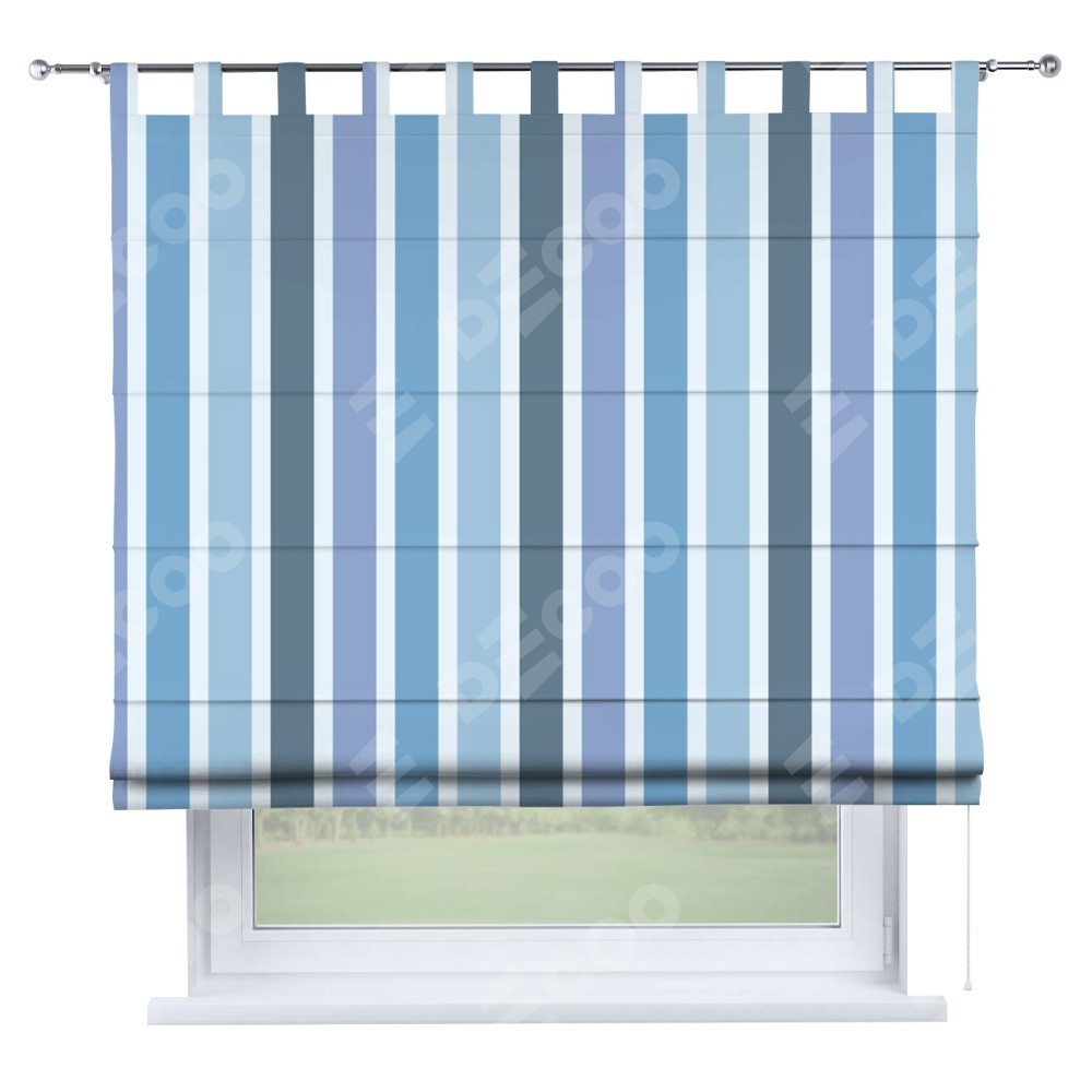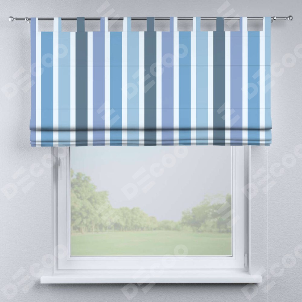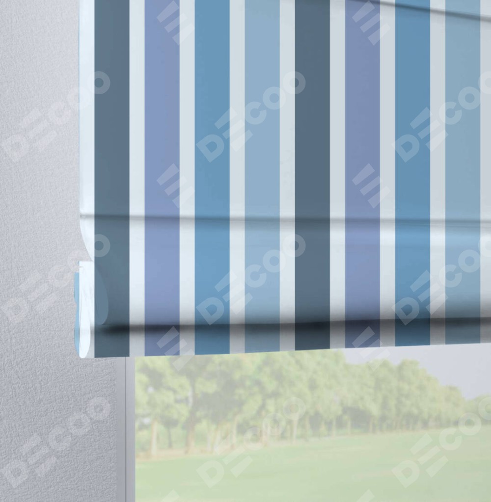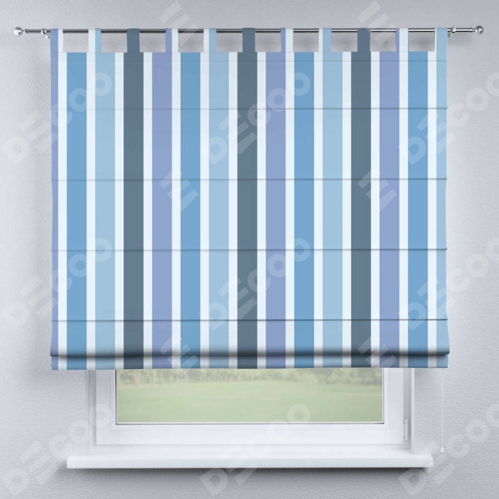 Римская штора «Кортин» на петлях «Сине-голубые вертикальные полоски»