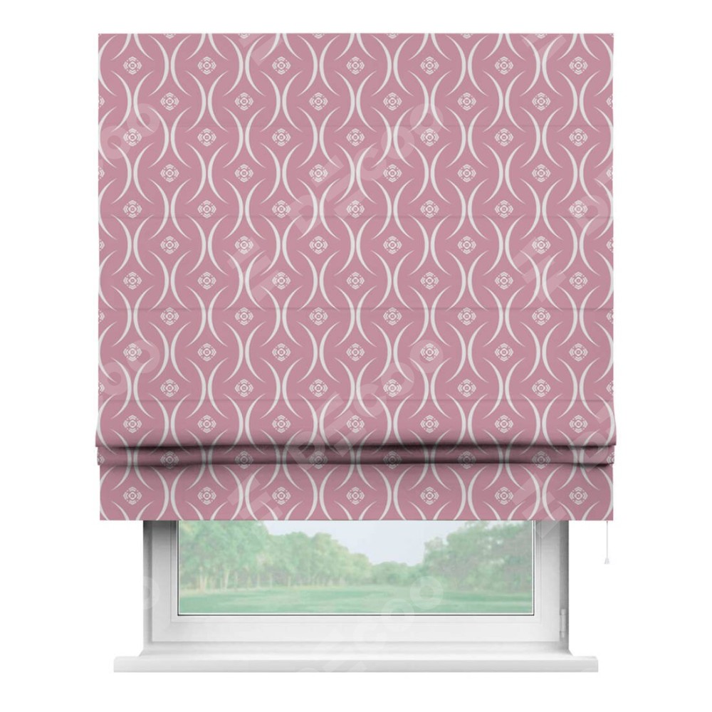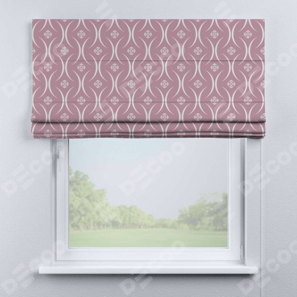 Римская штора «Кортин» для проема «Воздушный узор розовый» отлично подойдёт для интерьера: в гостиную, в кухню и на балкон.