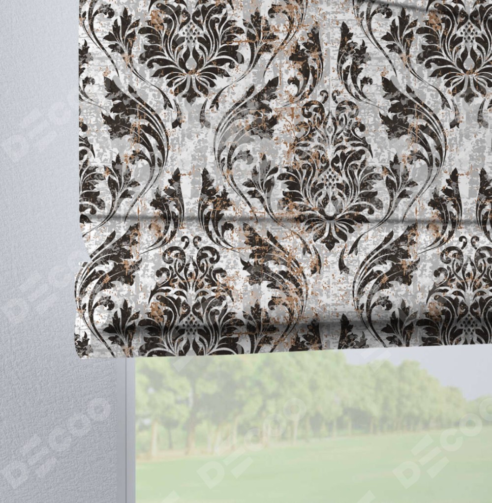 Римская штора на петлях «Дамаск тёмный» отлично подойдёт для интерьера: в гостиную, на балкон и в кухню.