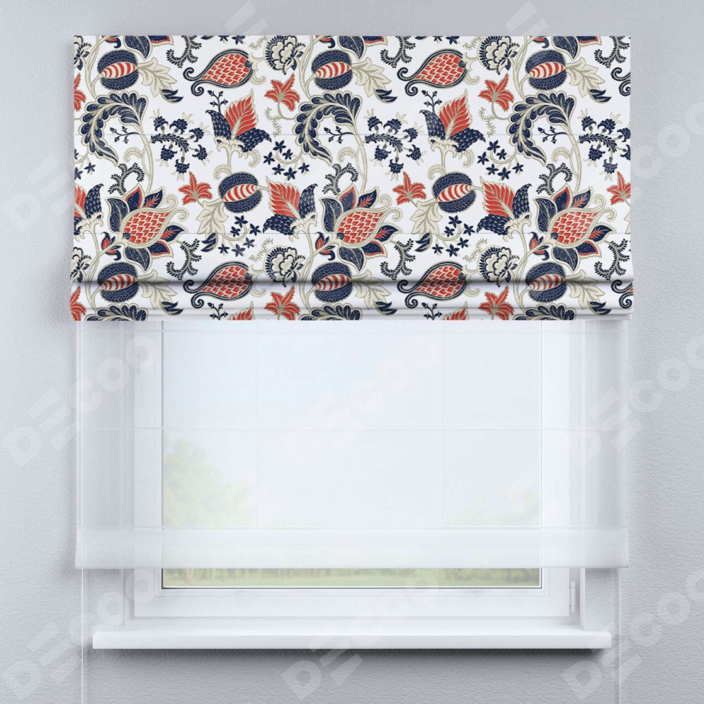 Римская штора день-ночь производителя «Cortin», используется для проёма, пошита из двух полотен, с лицевой блэкаут с нанесением сублимационной печати «Пёстрые цветы», вторая ткань тюль (по стандарту комплектуется тюль белого цвета артикул V-01). Имеет универсальный механизм и подходит для монтажа: на потолок, на стену и в нишу.