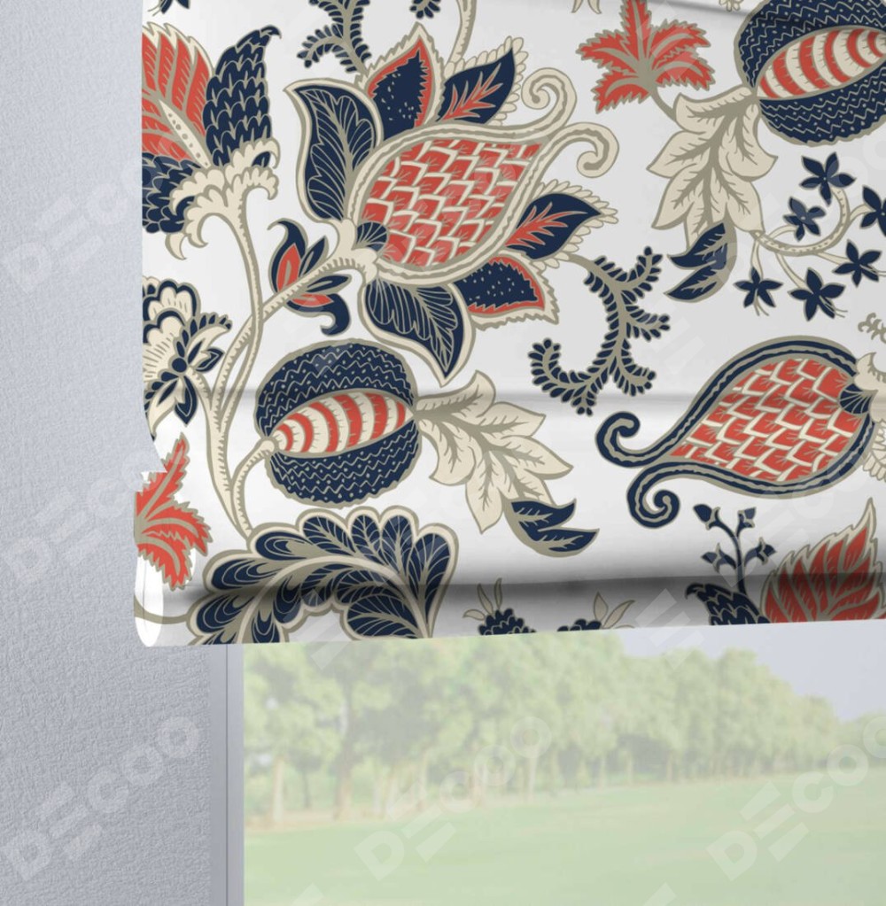 Римская штора «Кортин» на петлях «Пёстрые цветы» отлично подойдёт для интерьера: в гостиную, на балкон и в спальню.