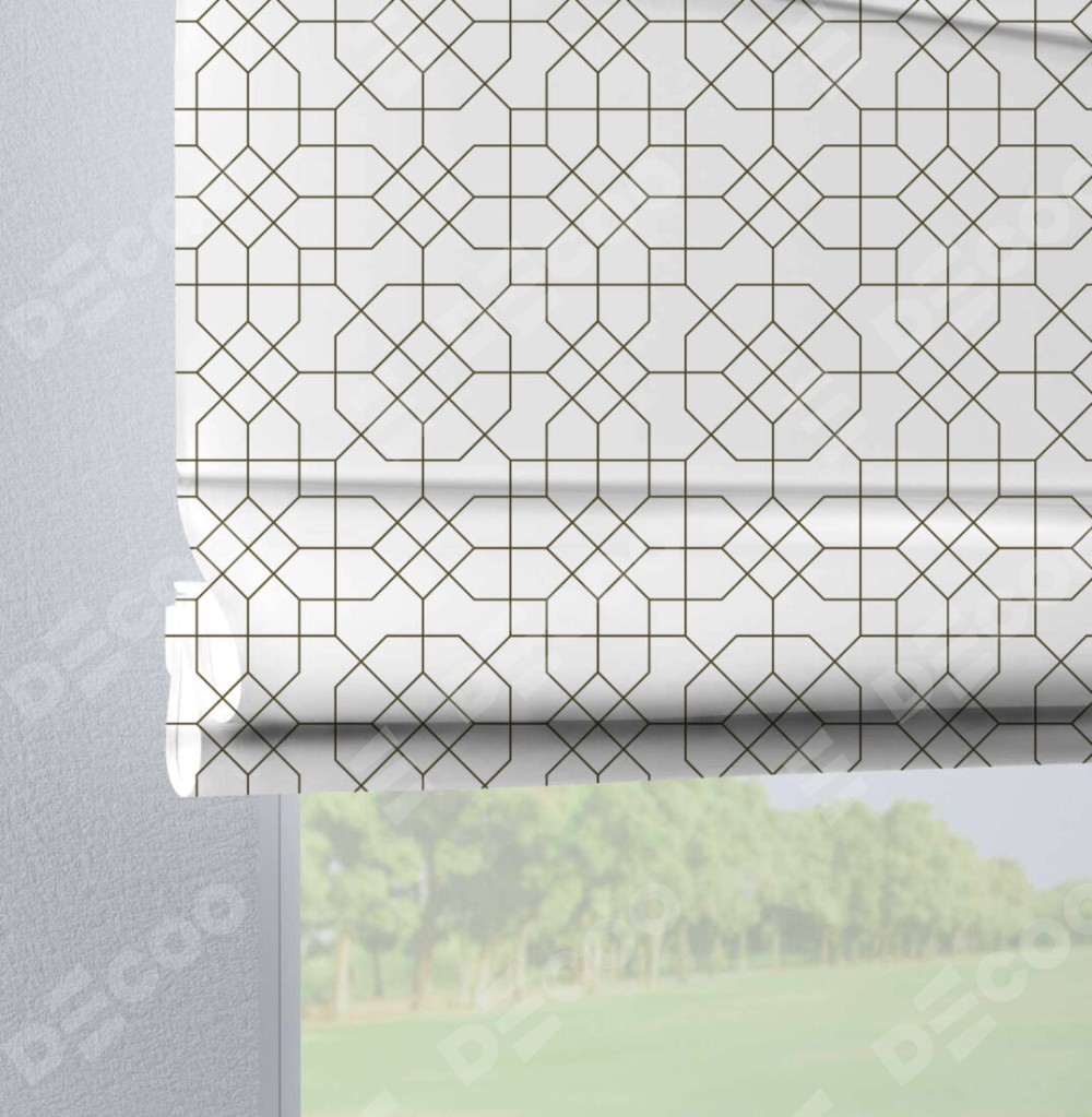 Римская штора на петлях «Орнамент из тонких линий» отлично подойдёт для интерьера: на балкон, в кухню и в спальню.