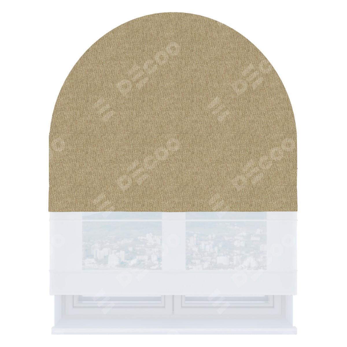 Римская штора день-ночь производителя «Cortin», используется для арочного проёма, пошита из двух полотен, с лицевой стороны стиф димаут бежевый артикул 18083, вторая ткань тюль (по стандарту комплектуется тюль белого цвета артикул V-01). Штора шьётся по индивидуальным размерам, для данного типа римской шторы возможная ширина от 60 до 300 см. Удобное управление каждой шторой отдельно.