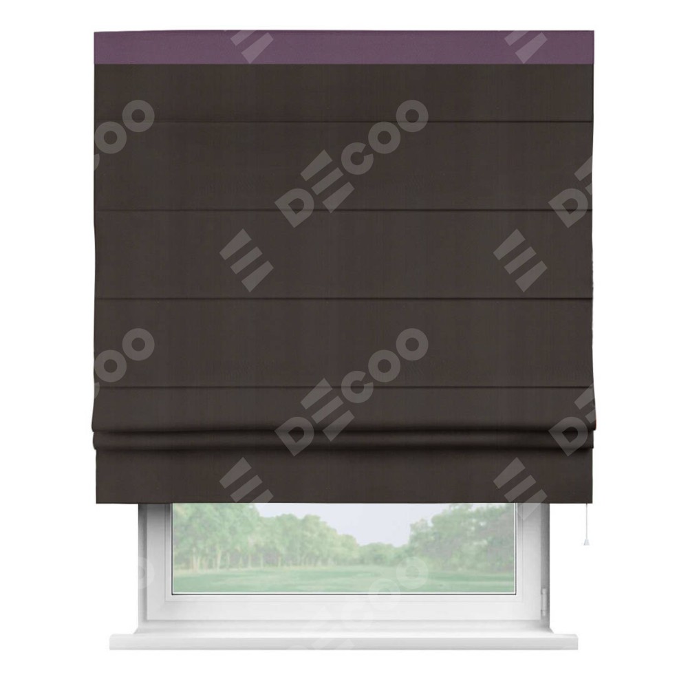 Римская штора производителя «Cortin», используется для проёма, пошита из ткани блэкаут однотонный венге, артикул ткани 88286. Отделка шторы кантом «Кинг», ткань для канта используется из блэкаута однотонного разной расцветки на выбор. Имеет универсальный механизм и подходит для монтажа: на потолок, на стену и в нишу.