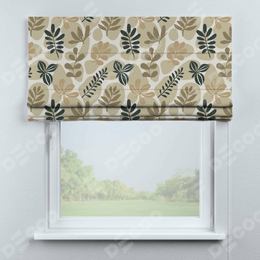 Римская штора «Кортин» для проема «Бежевый сад» отлично подойдёт для интерьера: на балкон, в спальню и в кухню.