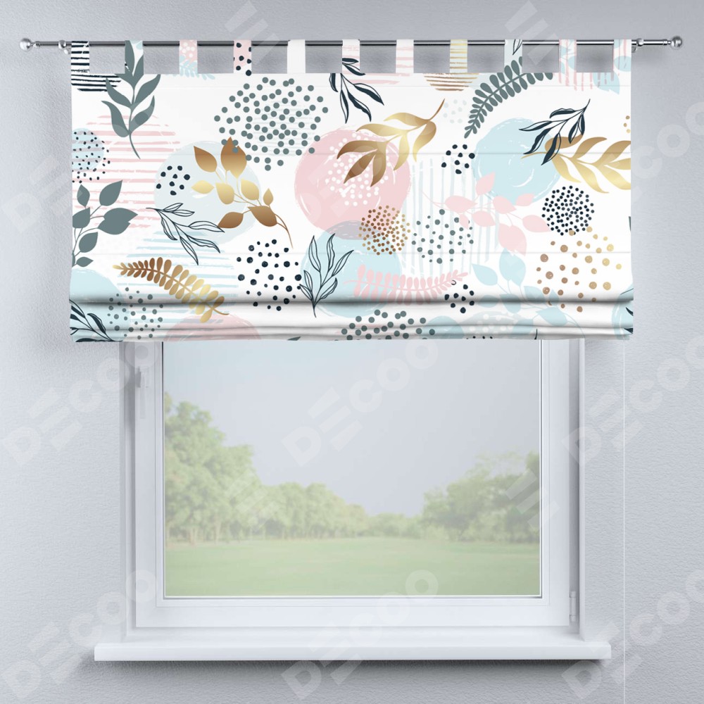Римская штора на петлях «Точки и листочки»