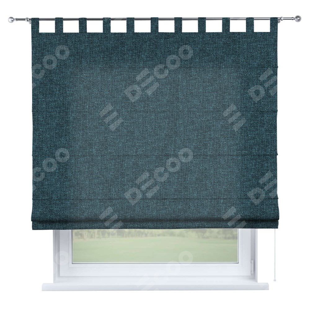 Римская штора производителя «Cortin», используется для проёма, пошита из ткани лён кашемир синий, артикул ткани 21623. Данная модель пошита на петлях, комплектуется на выбор круглым карнизом и подходит для монтажа на стену. Римская штора на петлях имеет простую систему регулировки высоты, отличительным преимуществом данной модели является простой способ монтажа. Достаточно повесить ее на трубу и штора готова!