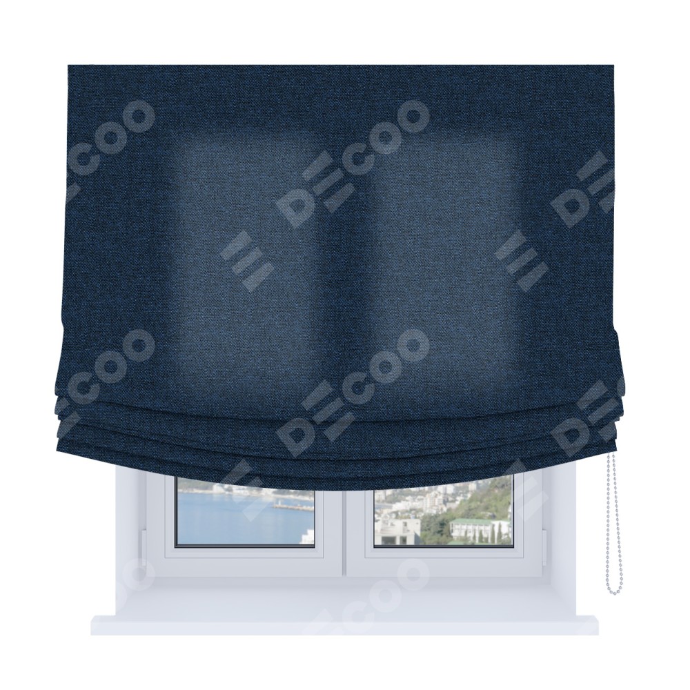 Римская штора Soft с мягкими складками, ткань лён кашемир тёмно-синий