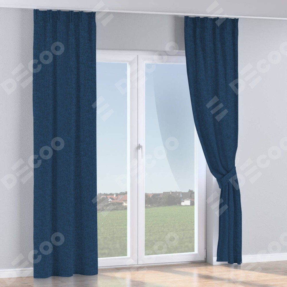 Комплект прямых штор, от производителя «Cortin», пошиты из ткани лён кашемир тёмно-синий, артикул ткани 17215. С изнаночной стороны в верхней части штор пристрачивается шторная лента с декоративными складками «Кустик». Для создания элегантных складок прямые шторы шьются по стандарту с коэффициентом 1:2 (на 100 см. ширины проёма 200 см. ширины ткани).