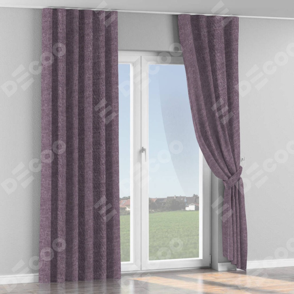 Комплект прямых штор, от производителя «Cortin», пошиты из ткани лён кашемир фиолетовый, артикул ткани 17211. С изнаночной стороны в верхней части штор пристрачивается шторная лента с декоративными складками «Волна». Для создания элегантных складок прямые шторы шьются по стандарту с коэффициентом 1:2 (на 100 см. ширины проёма 200 см. ширины ткани).