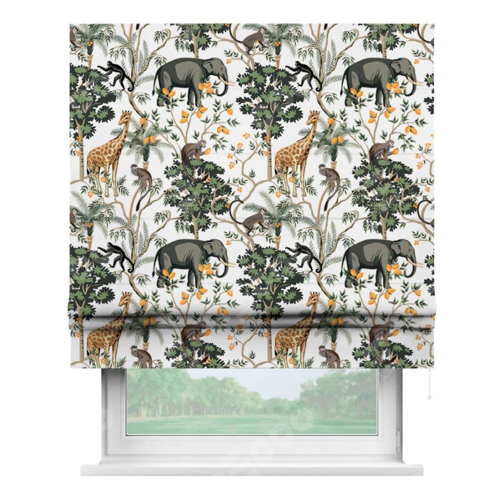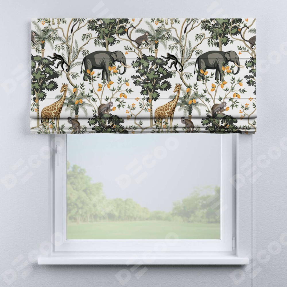 Римская штора «Кортин» для проема «Африканские равнины» отлично подойдёт для интерьера: в спальню, в детскую и в кухню.