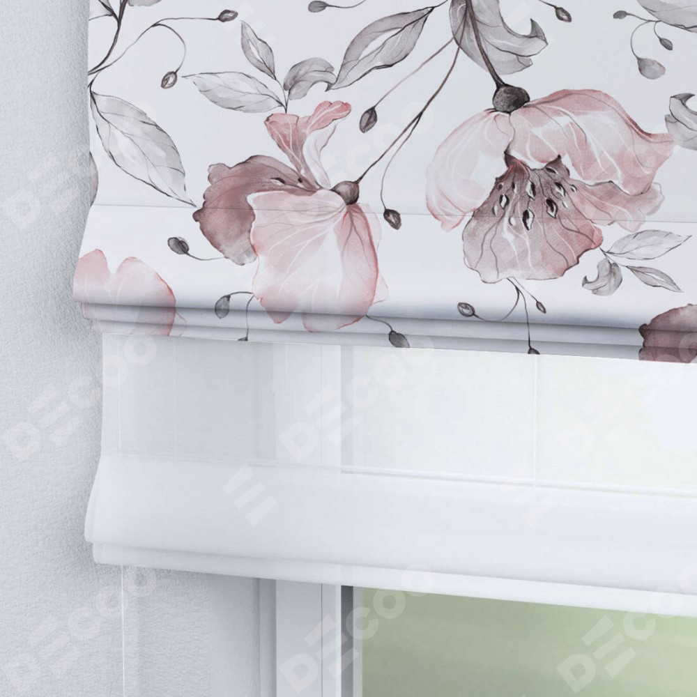 Римская штора день-ночь производителя «Cortin», используется для проёма, пошита из двух полотен, с лицевой блэкаут с нанесением сублимационной печати «Бежевая лагуна», вторая ткань тюль (по стандарту комплектуется тюль белого цвета артикул V-01). Имеет универсальный механизм и подходит для монтажа: на потолок, на стену и в нишу.