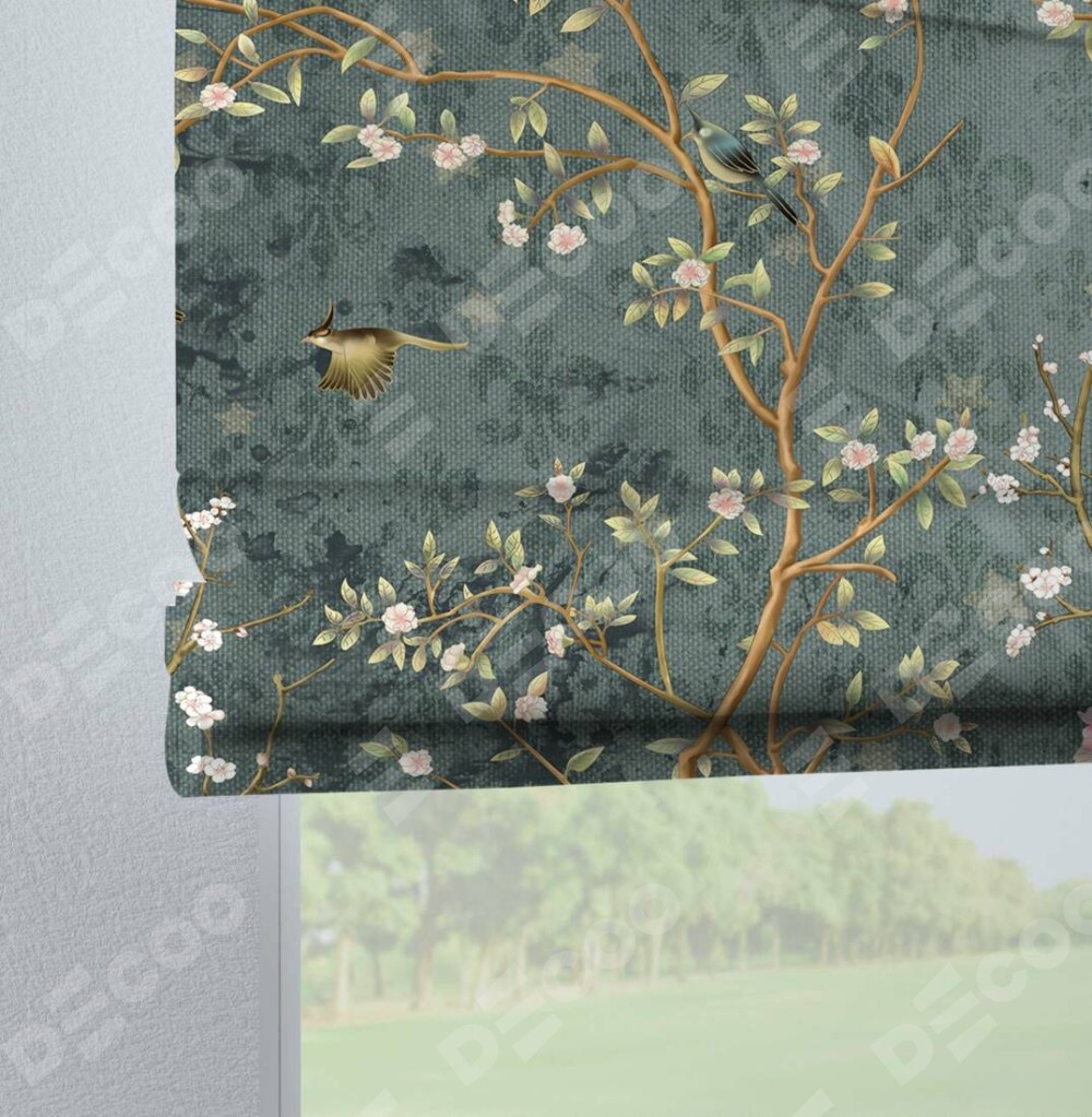 Римская штора на петлях «Тенистый сад» отлично подойдёт для интерьера: на балкон, в спальню и в гостиную.