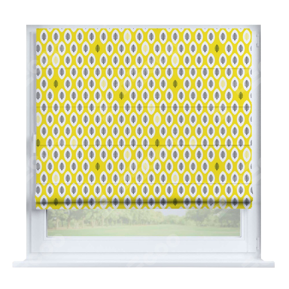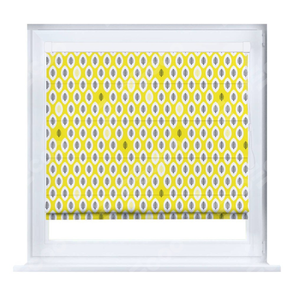 Римская штора «Кортин» на створку «Солнечные листья» отлично подойдёт для интерьера: в детскую, подростку в комнату и на балкон.