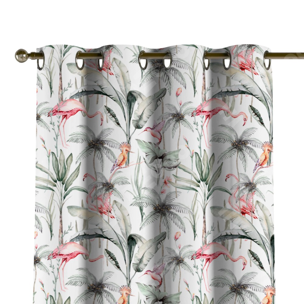 Комплект прямых штор, от производителя «Cortin», пошиты из ткани блэкаут с нанесением сублимационной печати «Изящные фламинго». Данная модель пошита на люверсах, комплектуется на выбор круглым карнизом и подходит для монтажа на стену или потолок. Прямые шторы на люверсах шьются по стандарту с коэффициентом 1/2 (на 100 см. ширины проёма 200 см. ширины ткани), отличительным преимуществом данной модели является простой способ монтажа. Достаточно повесить ее на трубу и штора готова!