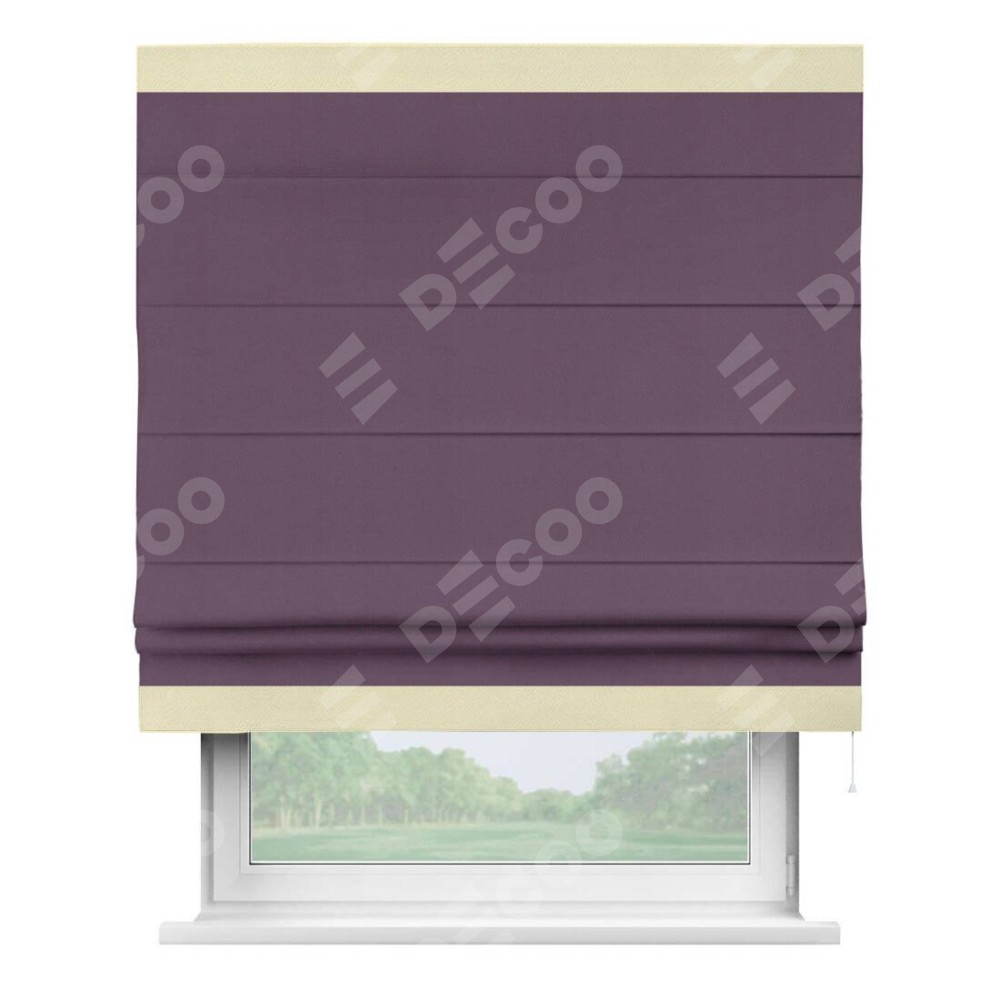 Римская штора производителя «Cortin», используется для проёма, пошита из ткани блэкаут однотонный фуксия, артикул ткани 88303. Отделка шторы кантом «Горизонт», ткань для канта используется из блэкаута однотонного разной расцветки на выбор. Имеет универсальный механизм и подходит для монтажа: на потолок, на стену и в нишу.