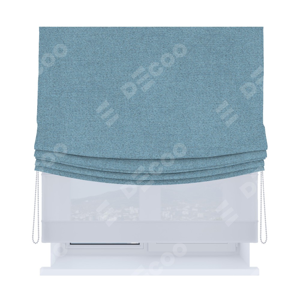 Римская штора день-ночь производителя «Cortin», используется для проёма, пошита из двух полотен, с лицевой стороны лён блэкаут голубой артикул 69574, вторая ткань тюль (по стандарту комплектуется тюль белого цвета артикул V-01). Имеет универсальный механизм и подходит для монтажа: на потолок, на стену и в нишу. Удобное управление каждой шторой отдельно.