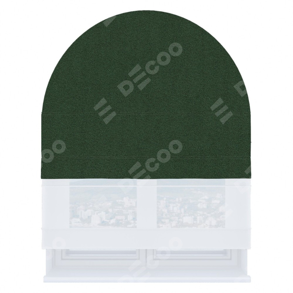 Римская штора день-ночь производителя «Cortin», используется для арочного проёма, пошита из двух полотен, с лицевой стороны лён блэкаут зелёный артикул 69497, вторая ткань тюль (по стандарту комплектуется тюль белого цвета артикул V-01). Штора шьётся по индивидуальным размерам, для данного типа римской шторы возможная ширина от 60 до 300 см. Удобное управление каждой шторой отдельно.