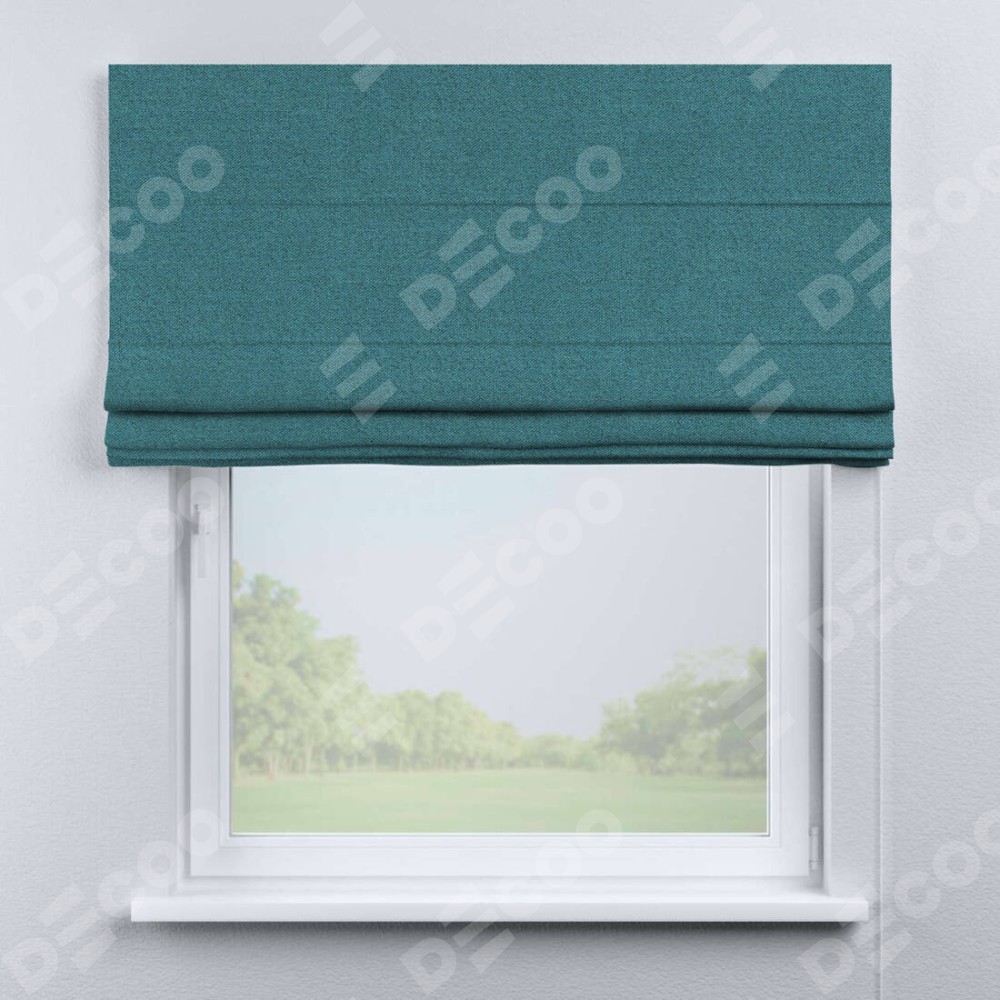 Римская штора «Кортин» для проема, ткань лён блэкаут, синий