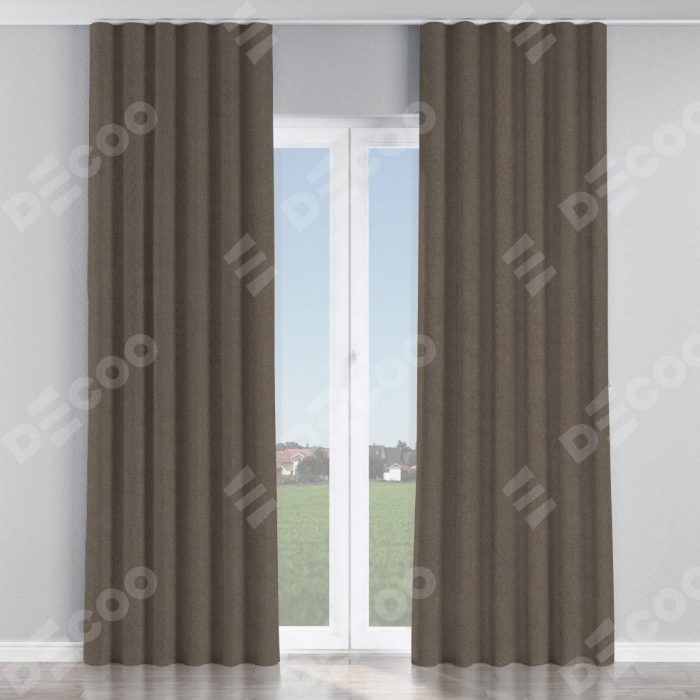 Комплект прямых штор, от производителя «Cortin», пошиты из ткани лён блэкаут коричневый, артикул ткани 69383. С изнаночной стороны в верхней части штор пристрачивается шторная лента с декоративными складками «Волна». Для создания элегантных складок прямые шторы шьются по стандарту с коэффициентом 1:2 (на 100 см. ширины проёма 200 см. ширины ткани).