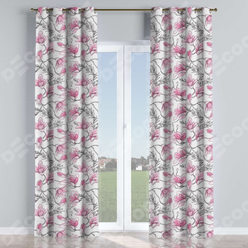 Комплект прямых штор, от производителя «Cortin», пошиты из ткани блэкаут с нанесением сублимационной печати «Цветки магнолии». Данная модель пошита на люверсах, комплектуется на выбор круглым карнизом и подходит для монтажа на стену или потолок. Прямые шторы на люверсах шьются по стандарту с коэффициентом 1/2 (на 100 см. ширины проёма 200 см. ширины ткани), отличительным преимуществом данной модели является простой способ монтажа. Достаточно повесить ее на трубу и штора готова!