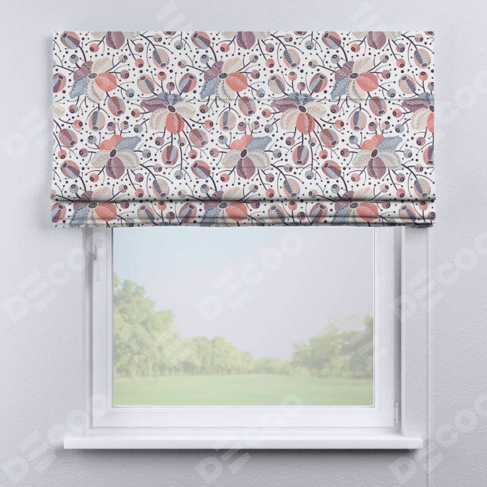 Римская штора «Кортин» для проема «Цветочный микс» отлично подойдёт для интерьера: в спальню, на балкон и в гостиную.