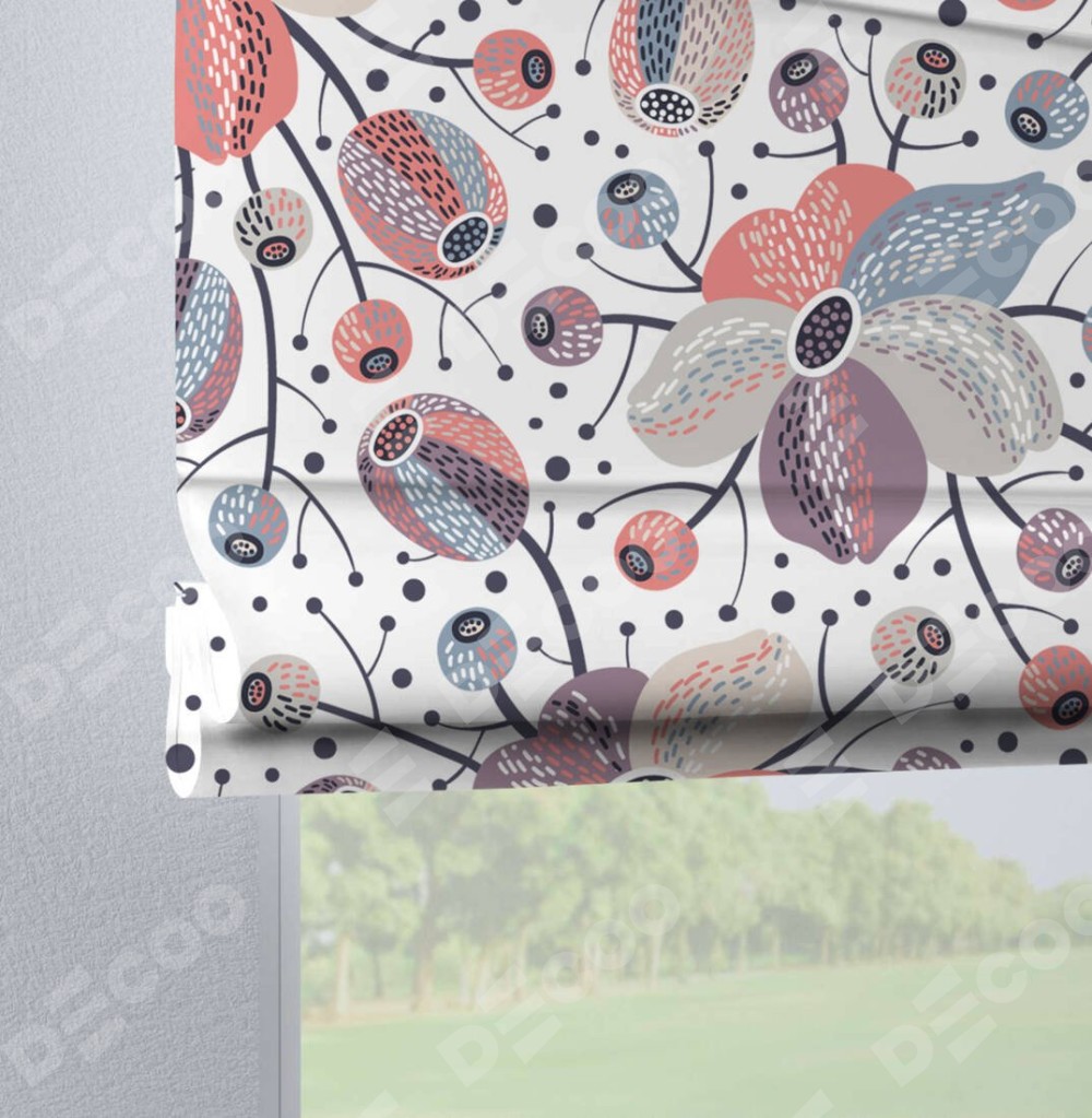 Римская штора на петлях «Цветочный микс» отлично подойдёт для интерьера: на балкон, в спальню и в кухню.