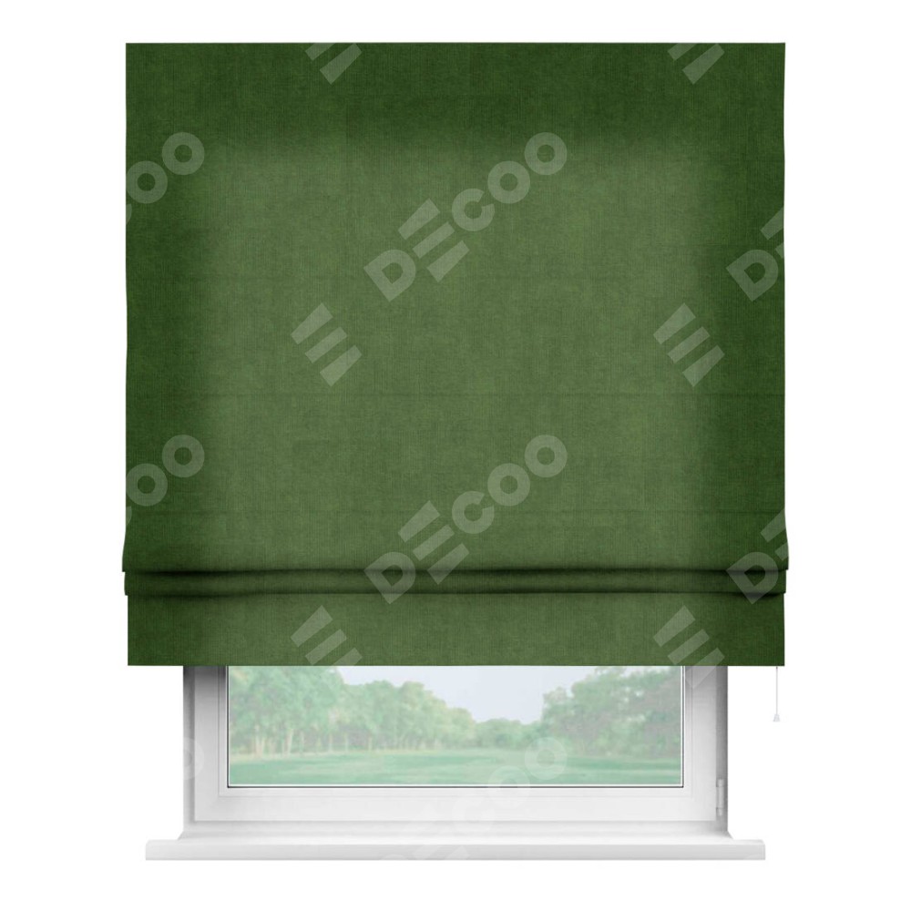 Римская штора «Кортин» для проема, ткань вельвет тёмно-салатовый