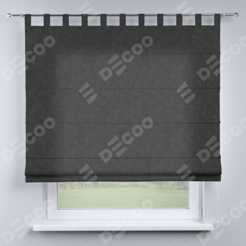 Римская штора производителя «Cortin», используется для проёма, пошита из ткани вельвет тёмно-серый, артикул ткани 33811. Данная модель пошита на петлях, комплектуется на выбор круглым карнизом и подходит для монтажа на стену. Римская штора на петлях имеет простую систему регулировки высоты, отличительным преимуществом данной модели является простой способ монтажа. Достаточно повесить ее на трубу и штора готова!