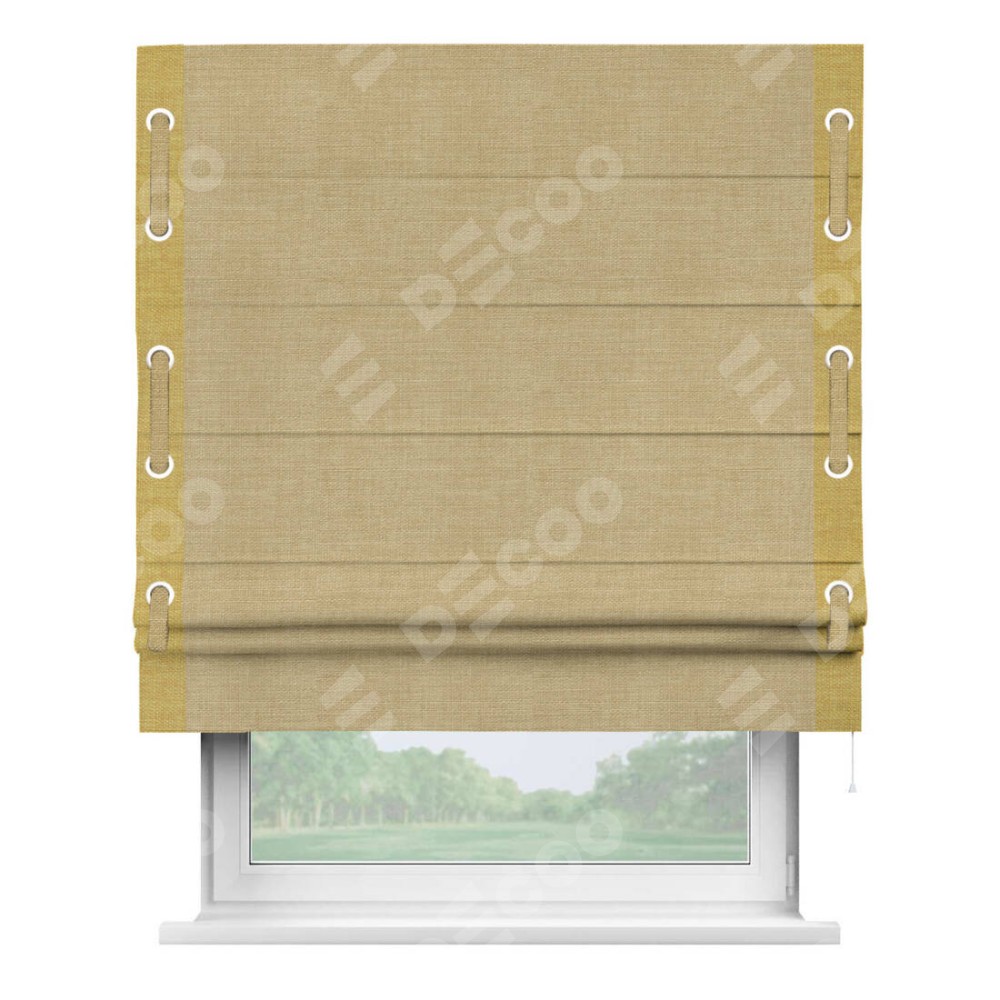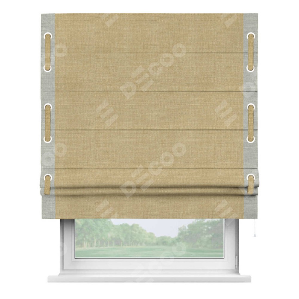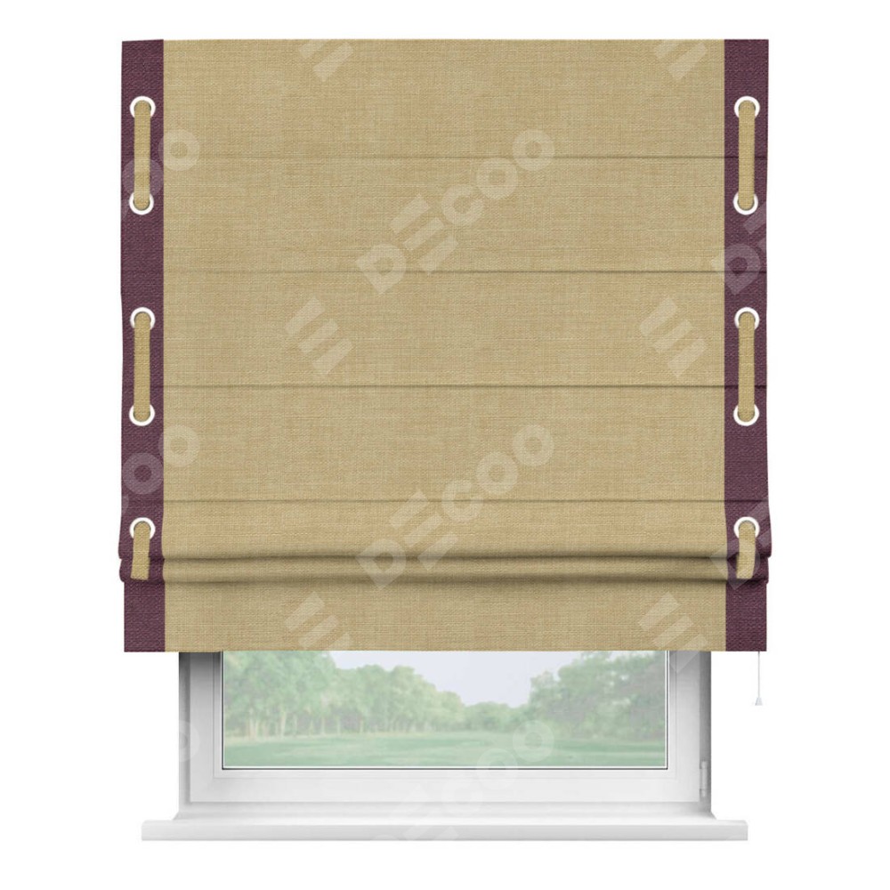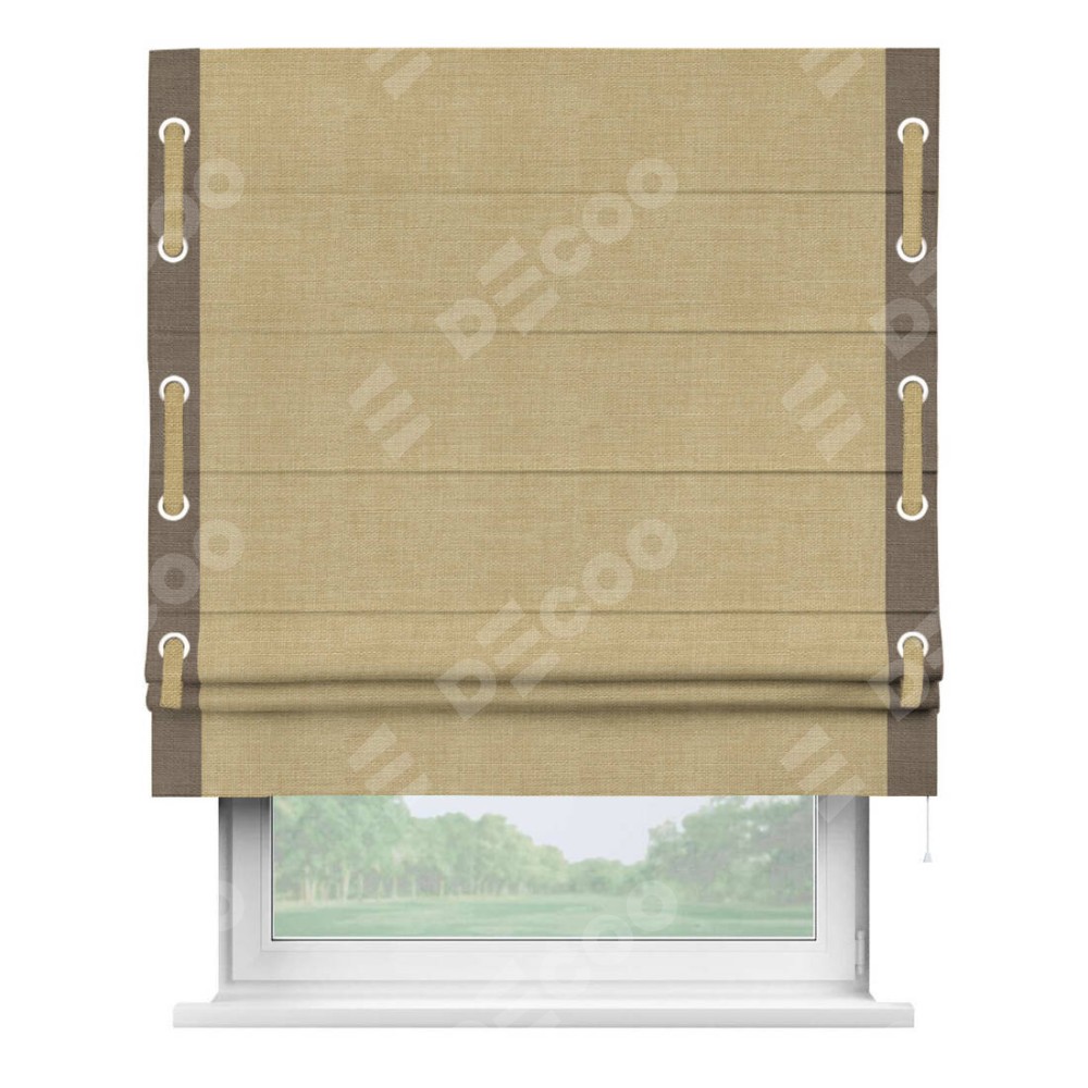 Римская штора «Кортин» с кантом Стрим Дуо (люверсы с пояском), для проема, ткань лён бежевый