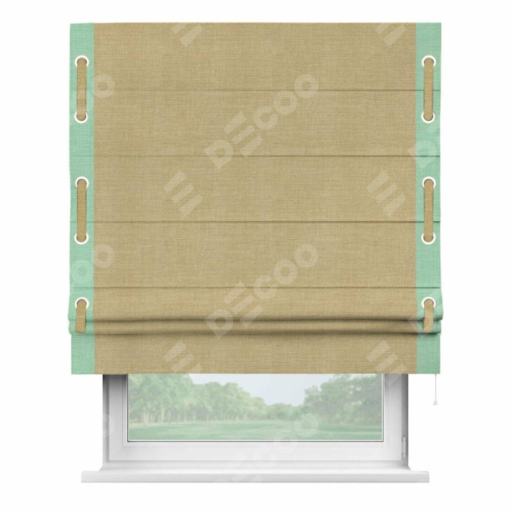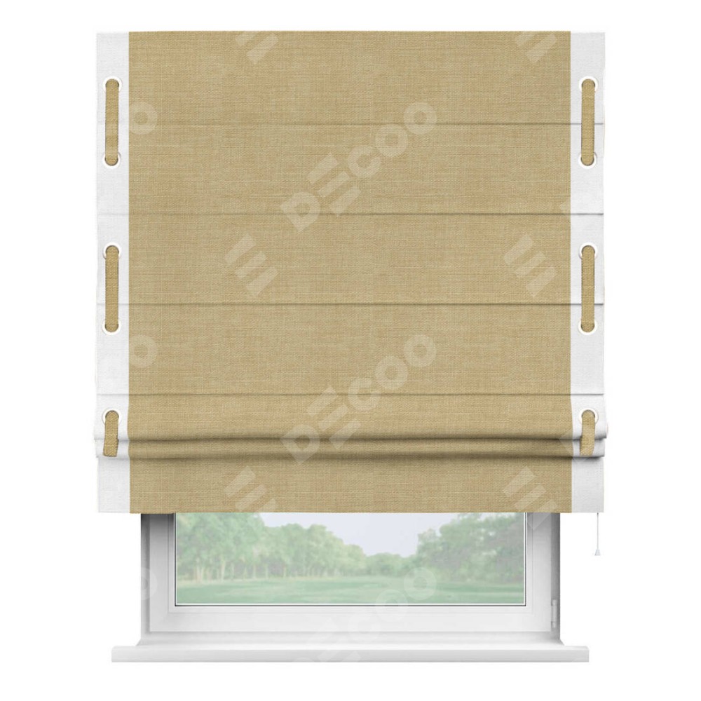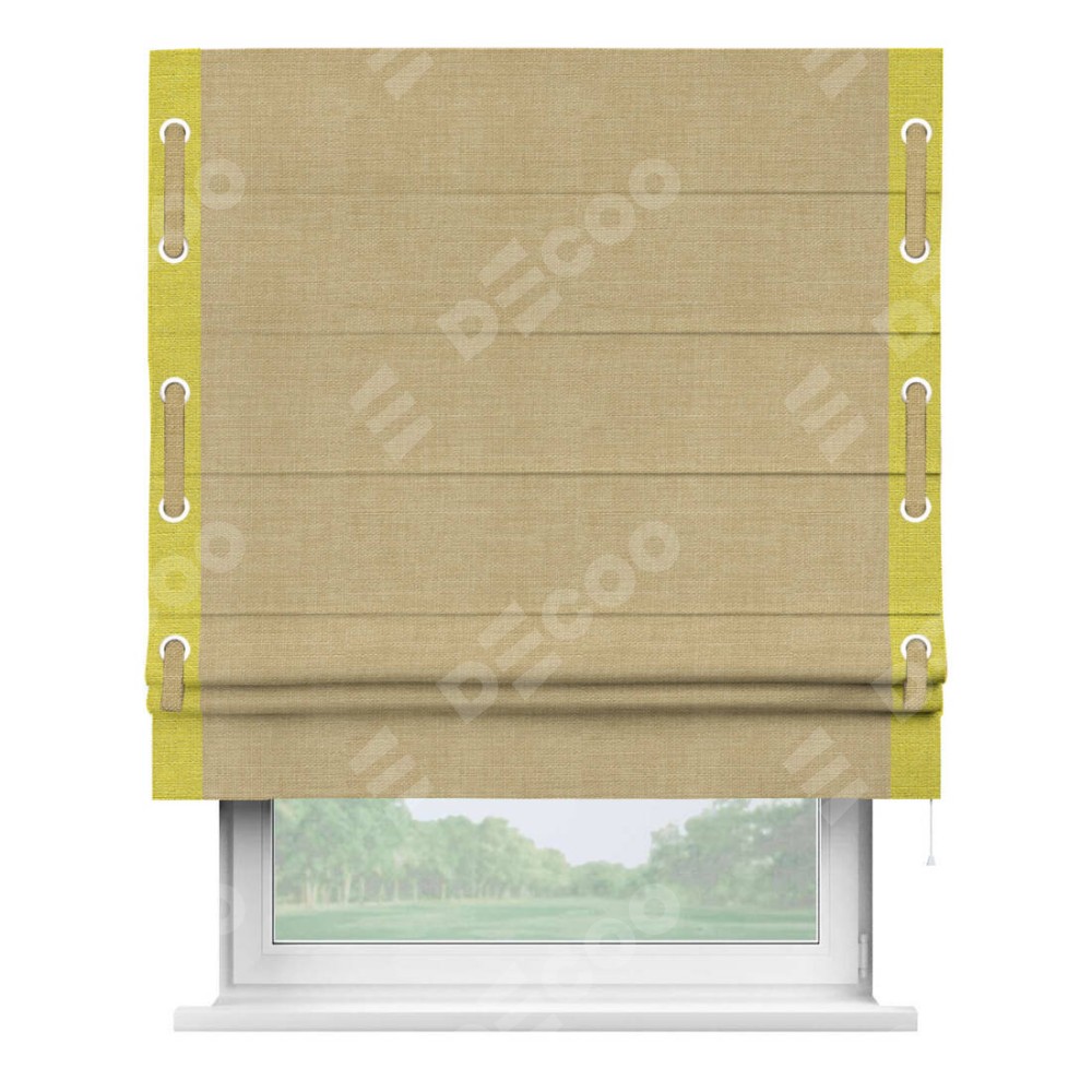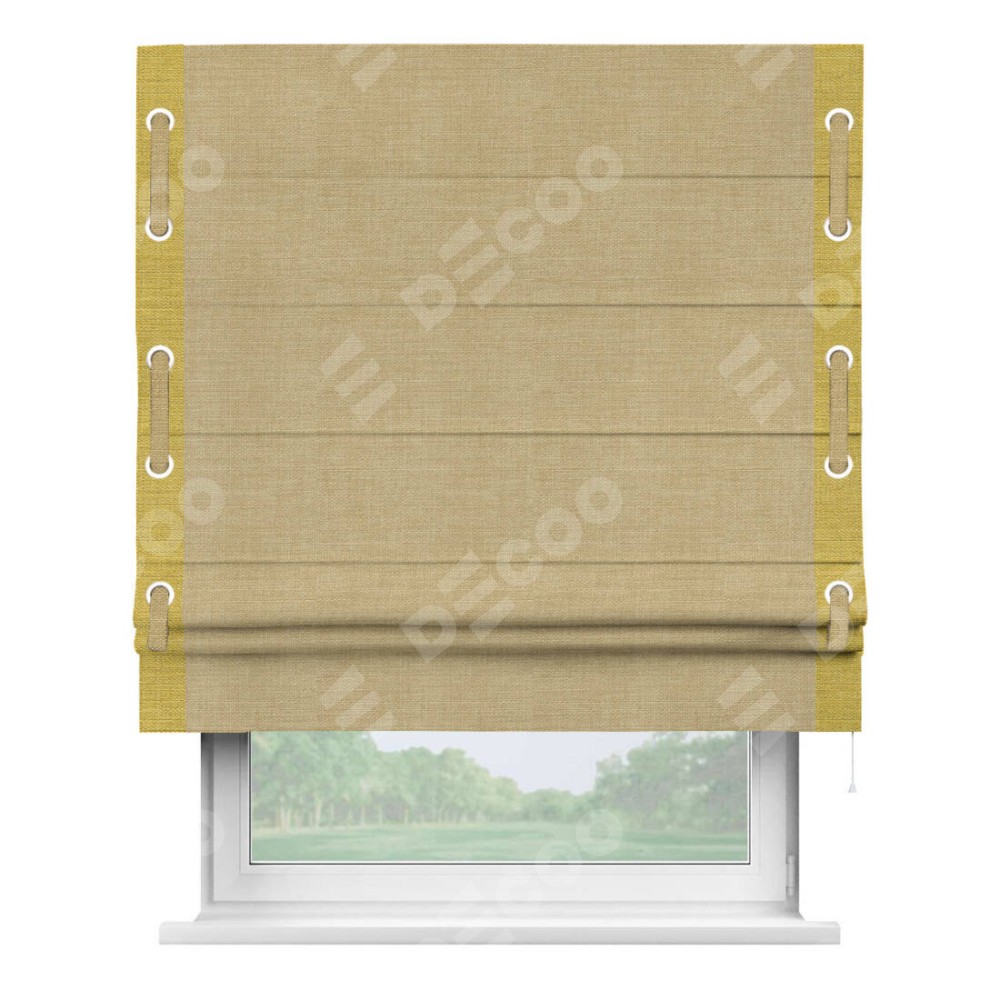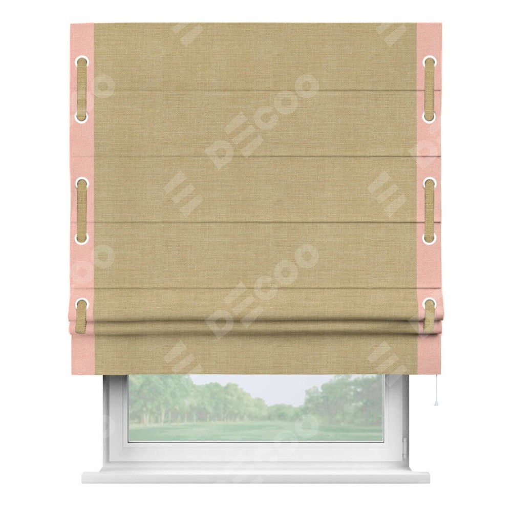 Римская штора «Кортин» с кантом Стрим Дуо (люверсы с пояском), для проема, ткань лён бежевый