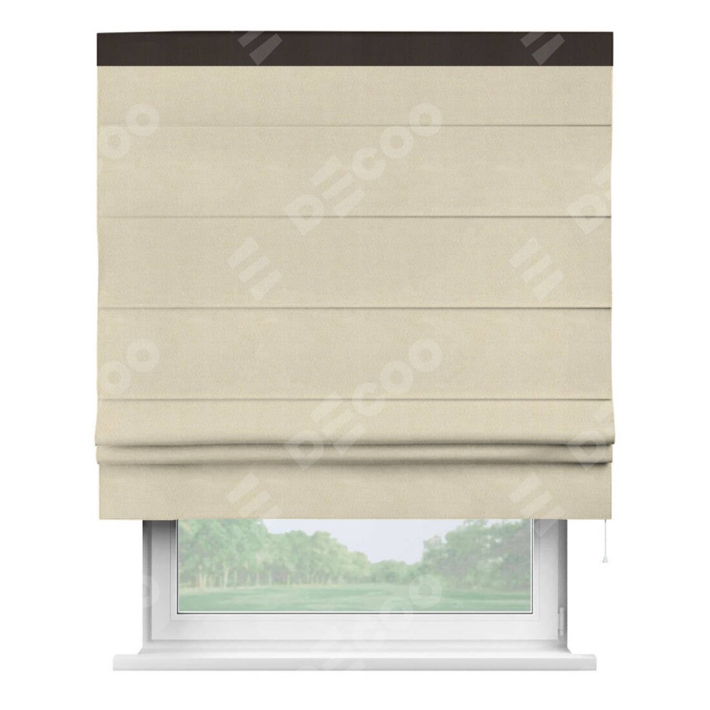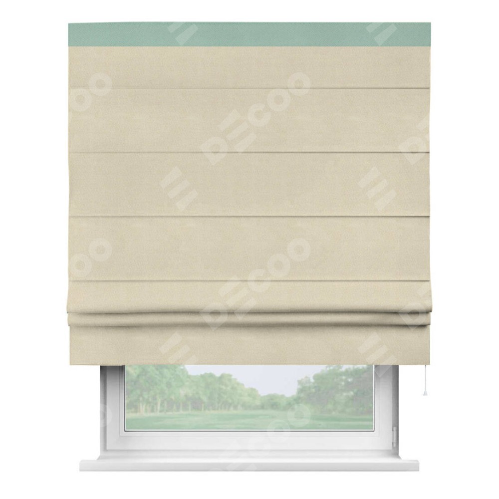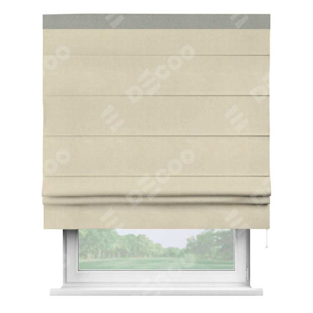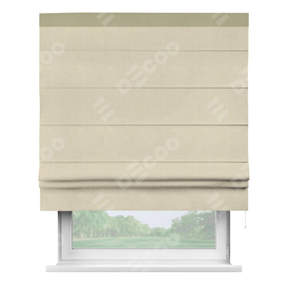 Римская штора производителя «Cortin», используется для проёма, пошита из ткани блэкаут однотонный бежевый, артикул ткани 13125. Отделка шторы кантом «Кинг», ткань для канта используется из блэкаута однотонного разной расцветки на выбор. Имеет универсальный механизм и подходит для монтажа: на потолок, на стену и в нишу.