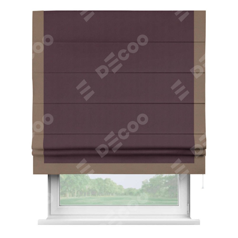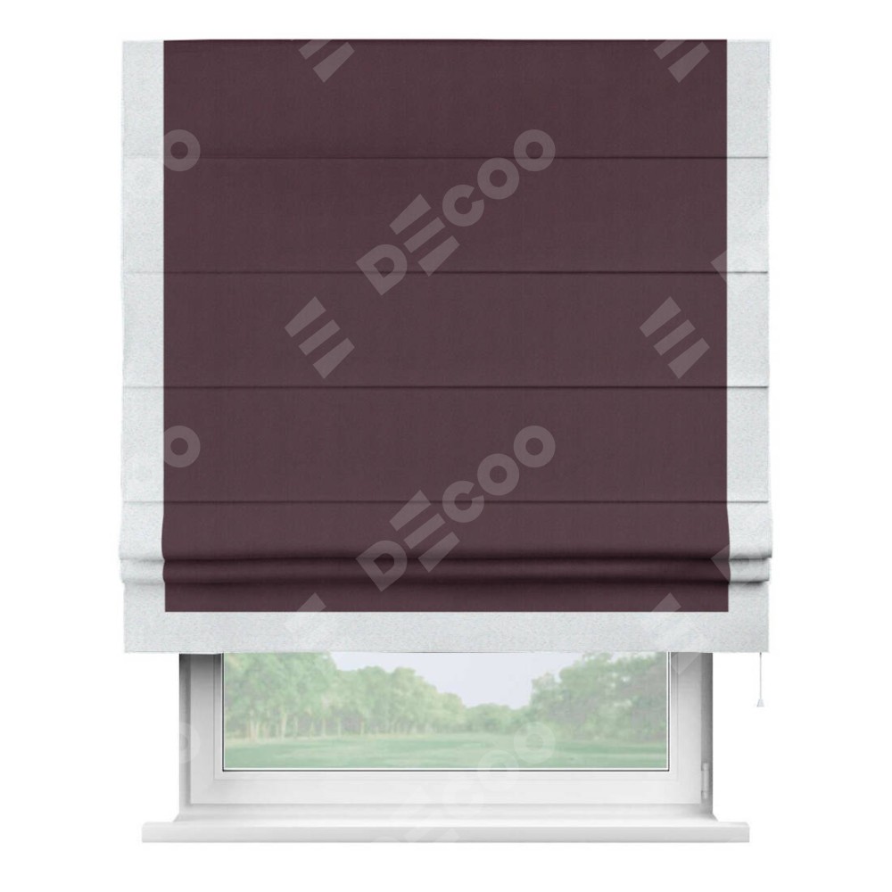 Римская штора производителя «Cortin», используется для проёма, пошита из ткани блэкаут однотонный сиреневый, артикул ткани 29333−2. Отделка шторы кантом «Виктория», ткань для канта используется из блэкаута однотонного разной расцветки на выбор. Имеет универсальный механизм и подходит для монтажа: на потолок, на стену и в нишу.