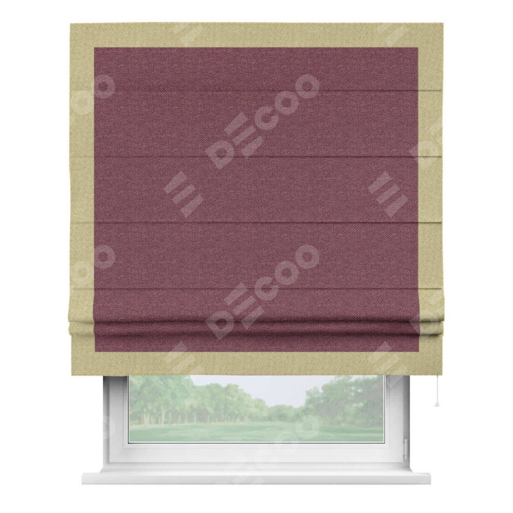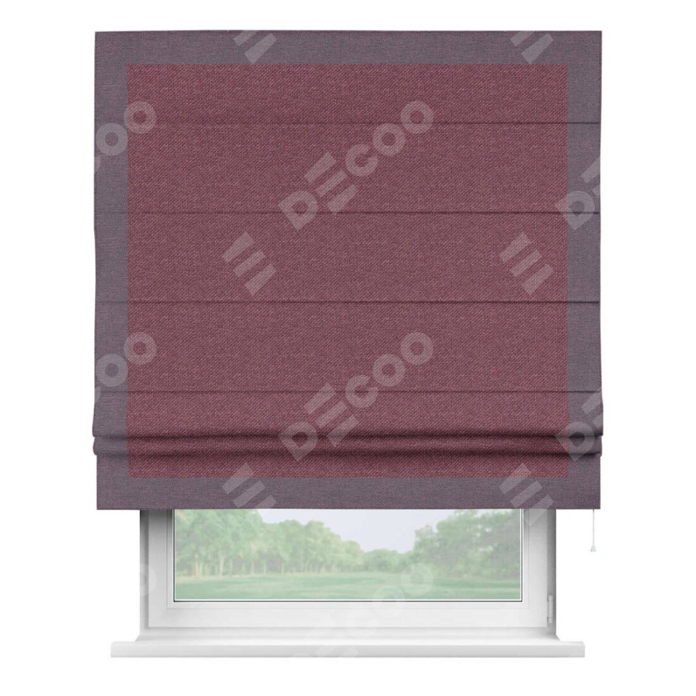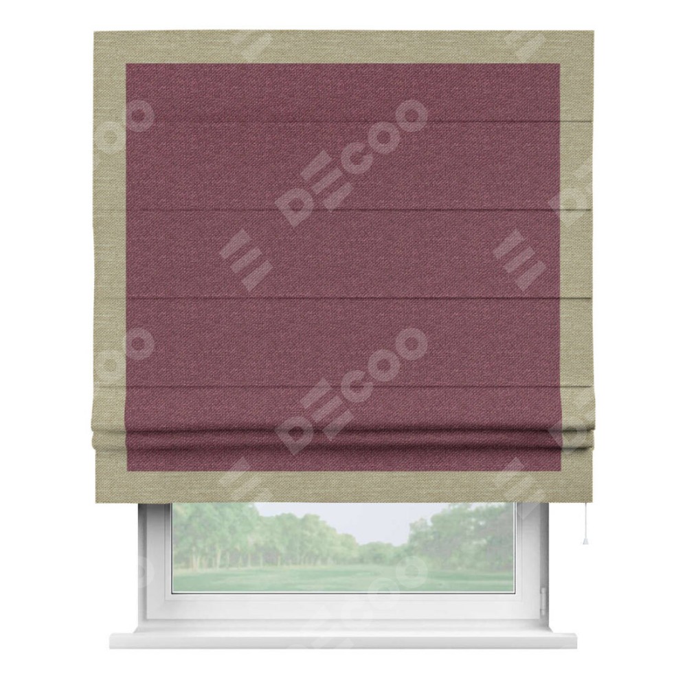 Римская штора «Кортин» с кантом Чесс, для проема, ткань лён димаут, марсала