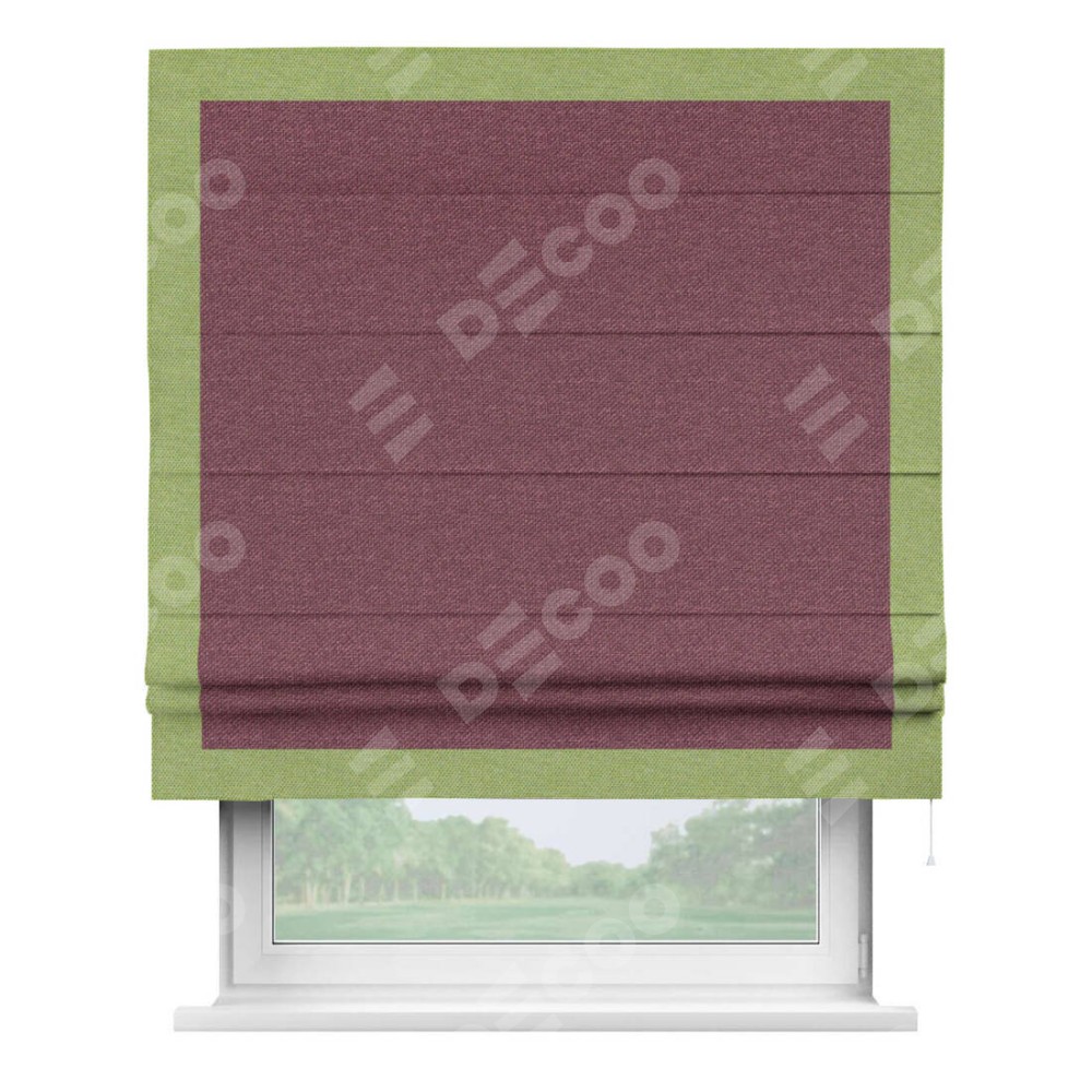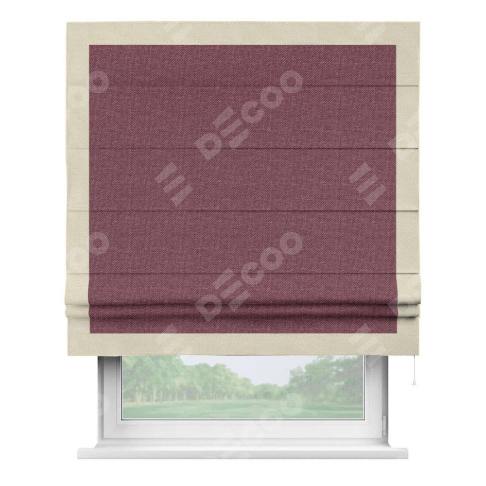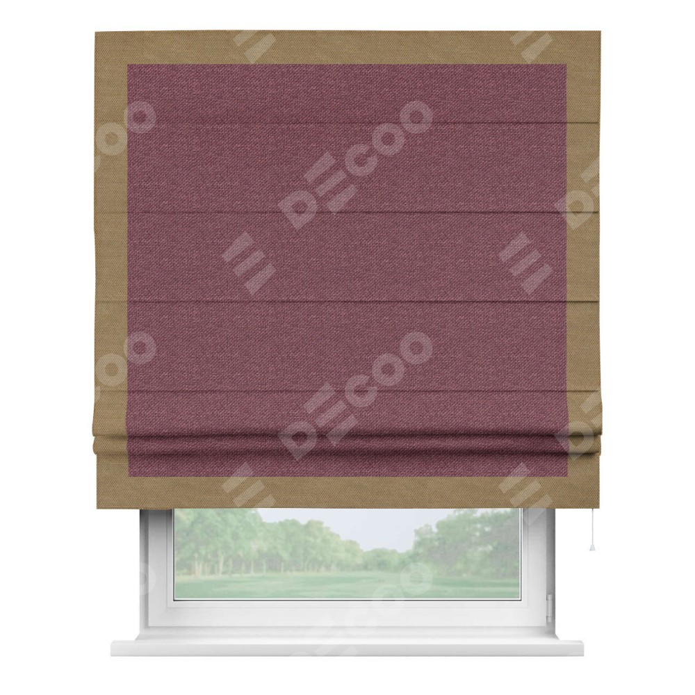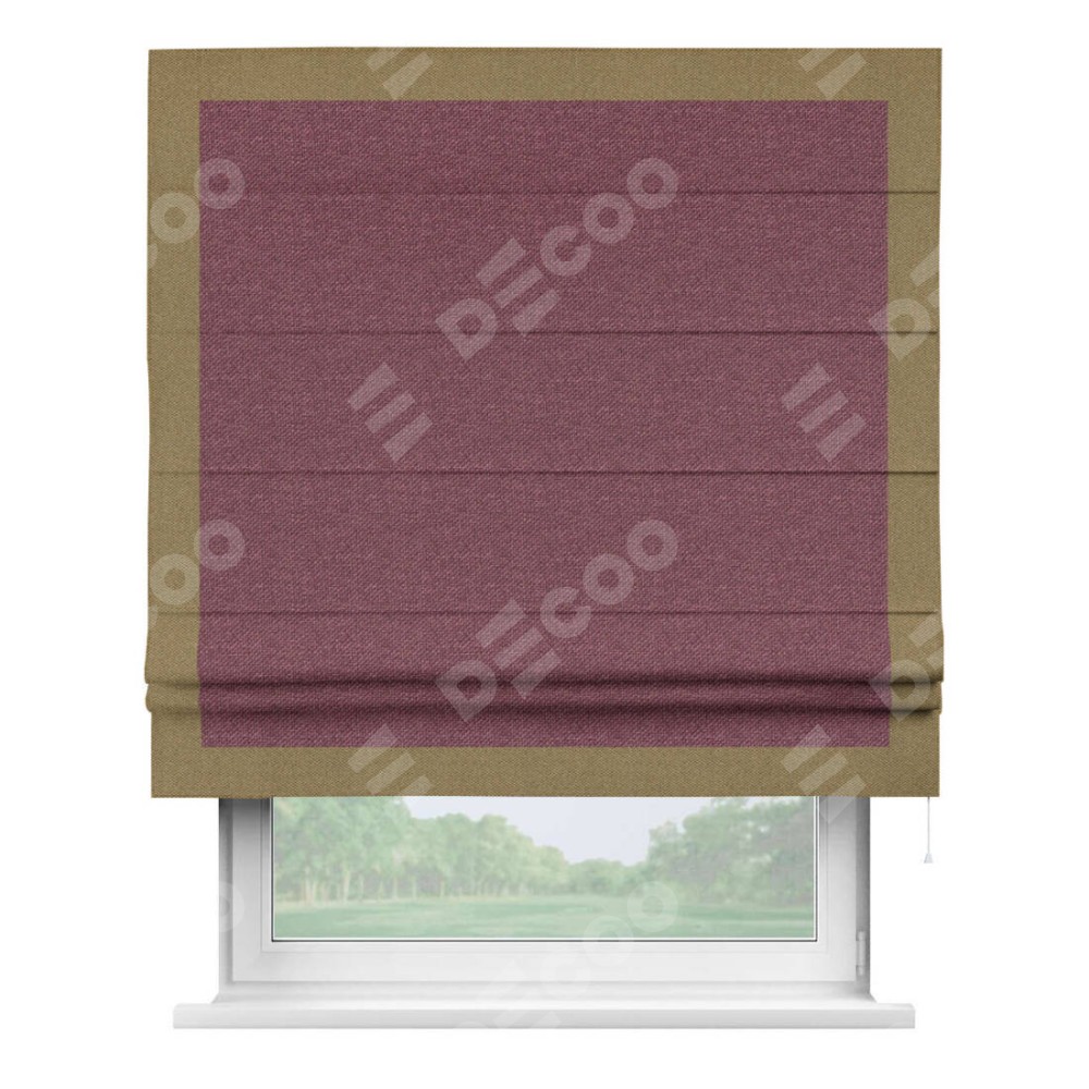 Римская штора «Кортин» с кантом Чесс, для проема, ткань лён димаут, марсала